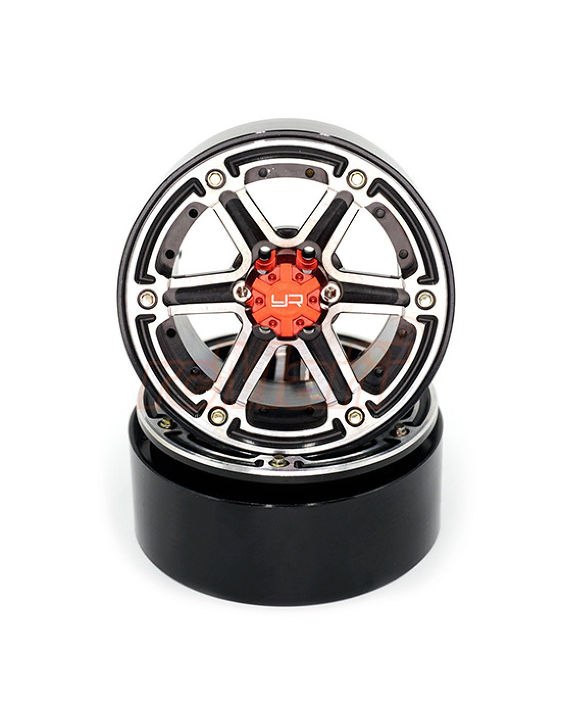RUEDA 2.2 ALUMINIO CNC 6 RADIOS BEADLOCK WHEEL W / WHEEL HUB 2PCS NEGRO,NO INCLUYE NEUMATICO