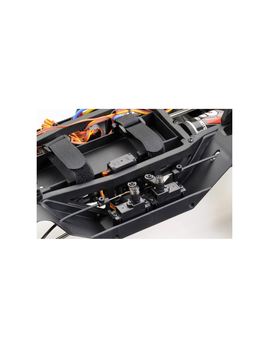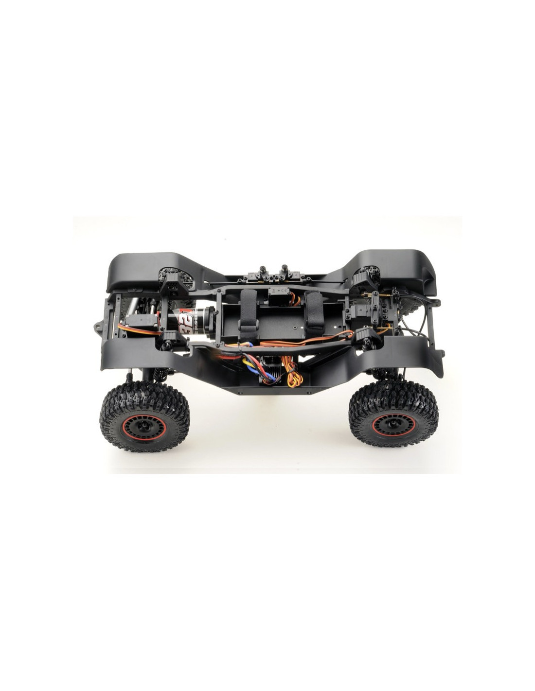 ¡El chasis tipo bañera completamente rediseñado ofrece muchas ventajas! Todos los componentes electrónicos son fácilmente accesibles, lo que es crucial dada la cantidad de tecnología incorporada. Gracias al chasis "LCG" extremadamente bajo y a la caja de cambios correspondiente, el centro de gravedad se baja, lo que resulta especialmente útil para conceptos de carrocería alta como nuestro WOLF. La caja de la batería está ubicada en el centro y se puede adaptar perfectamente a todas las baterías de LiPo de 2-3S y NiMH de 6-7 celdas gracias a su cierre de velcro y soporte ajustable. El control remoto de 11 canales es necesario para controlar todas las características técnicas. La unidad receptora/ESC 3 en 1 y la unidad de iluminación se mantienen separadas para brindarle al piloto todas las opciones para futuras optimizaciones y medidas de ajuste.