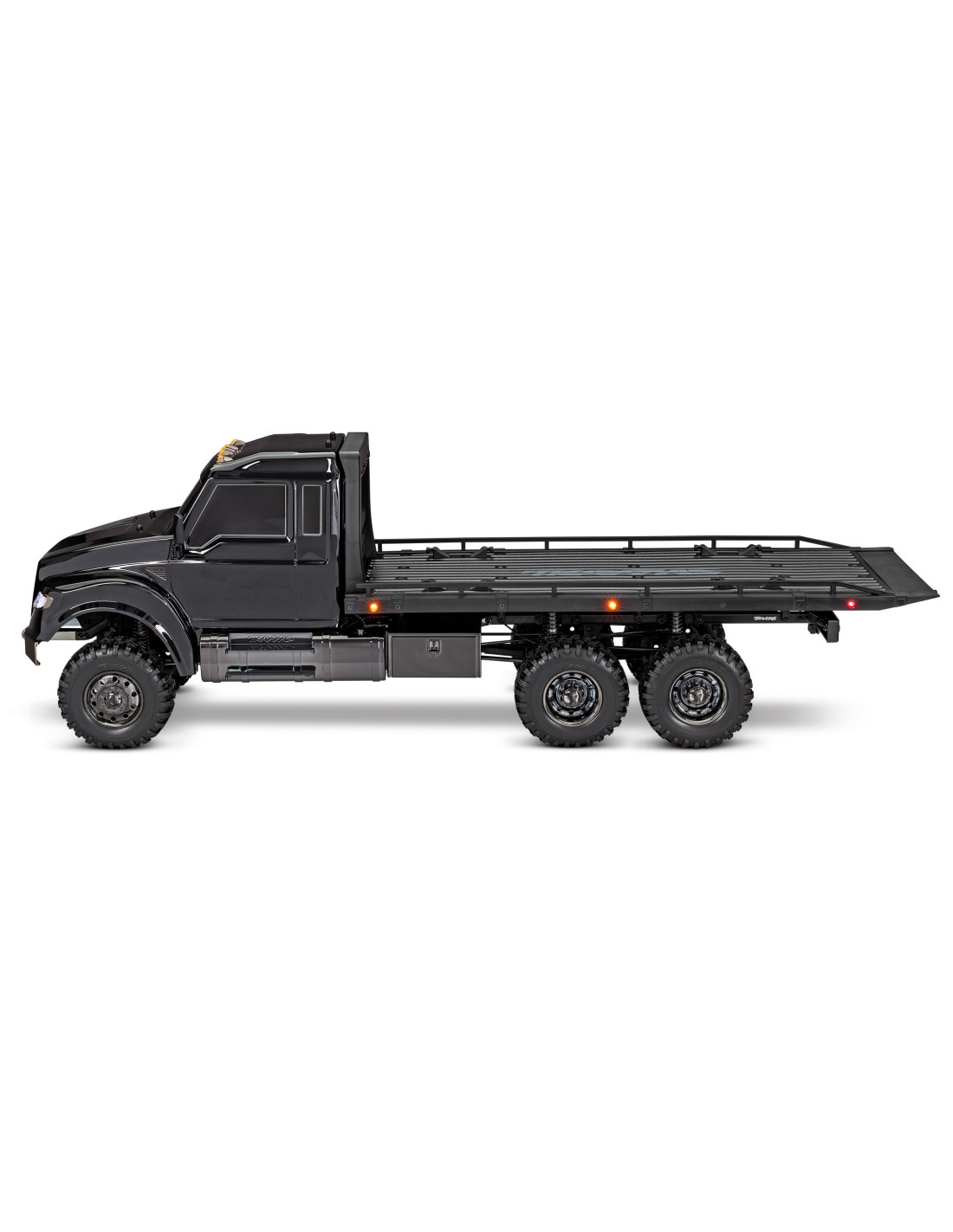 Una mirada al nuevo TRX-6® Ultimate RC Hauler y sabrá que este camión significa negocios. Basado en la plataforma TRX-6 de gran capacidad, el RC Hauler es el equipo más grande y más malo de la línea TRX. El aspecto resistente está respaldado por un rendimiento aún más resistente. La caja trasera cuenta con calzos ajustables en las ruedas y bandas de amarre para transportar y exhibir modelos 4-Tec® con estilo. Un sistema de iluminación LED muy detallado y accesorios de carrocería cromados en negro sobre negro le dan al Hauler un aspecto duro y amenazador. El Ultimate RC Hauler está construido con Traxxas Tough™ con ejes de portal, transmisión alta-baja y diferenciales de bloqueo remoto T-Lock™. Cuando esté listo para la diversión RC a gran escala, nada se compara con el Traxxas Ultimate RC Hauler.