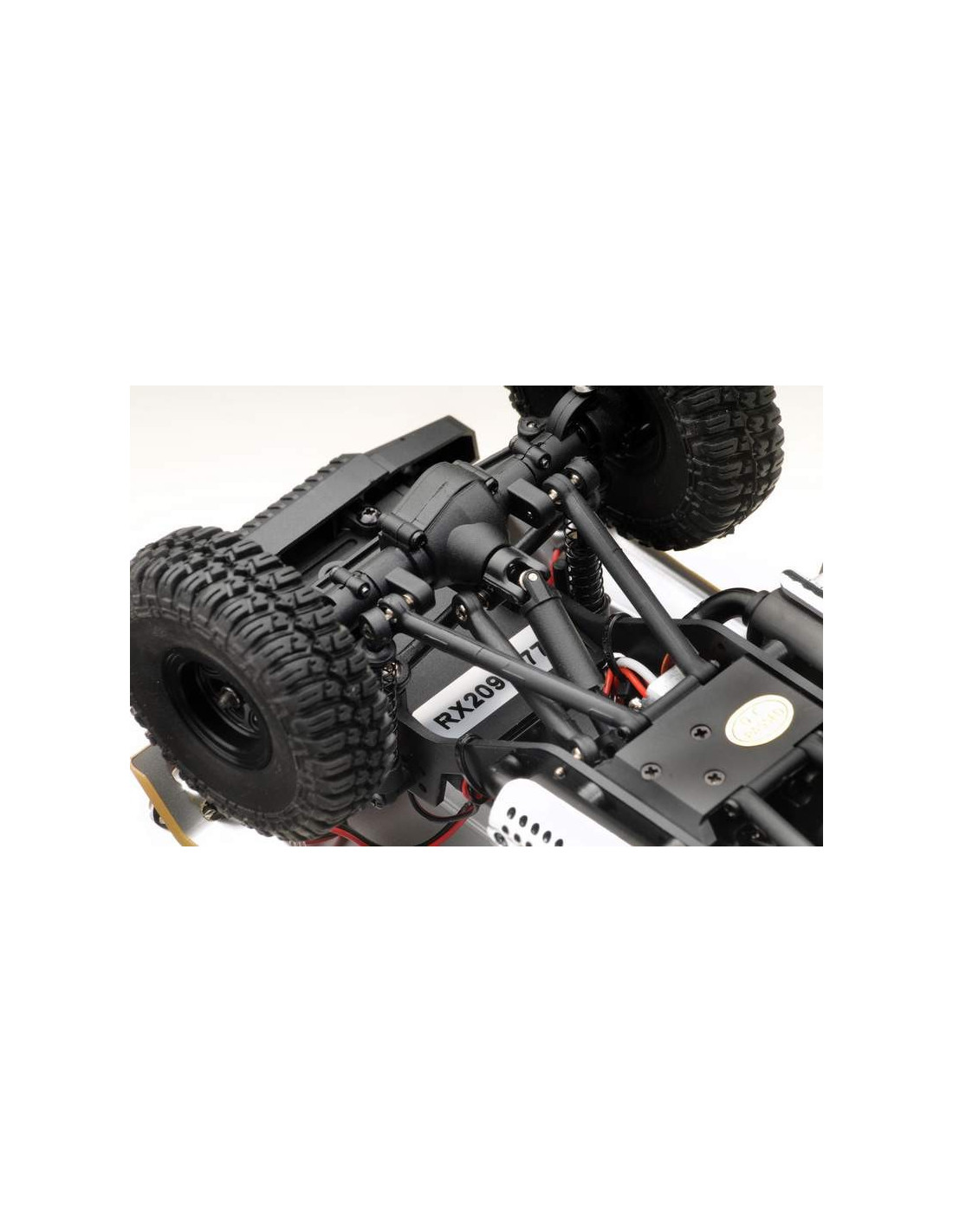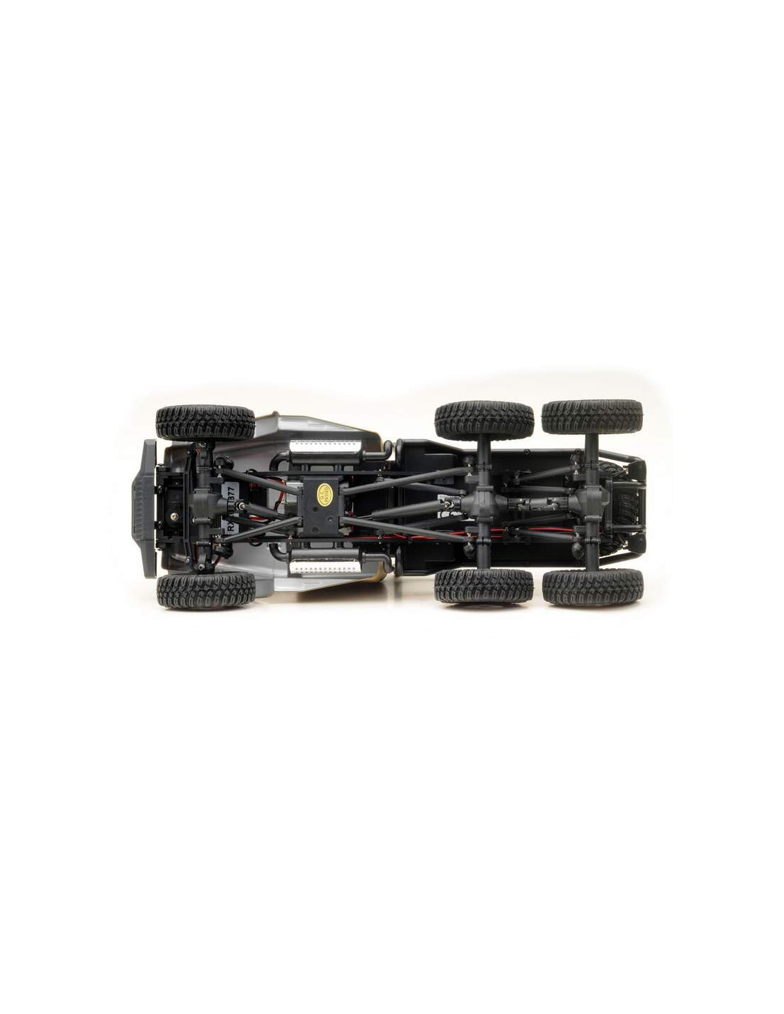 El chasis no es inferior al de los hermanos Crawler a mayor escala. Un chasis multibrazo, diferenciales completamente bloqueados, ejes de transmisión telescópicos, una caja de cambios de alto rendimiento de 3 etapas y, por supuesto, tracción total (6x6) garantizan un rendimiento superior. También hay un "freno de arrastre/montaña" para que pueda detenerse fácilmente incluso en las pendientes más pronunciadas.