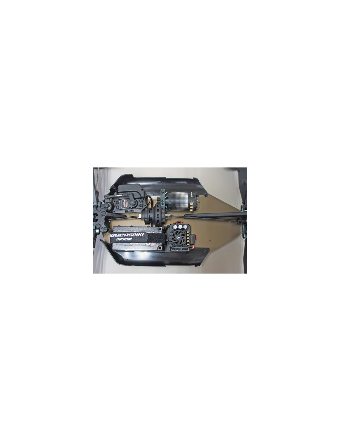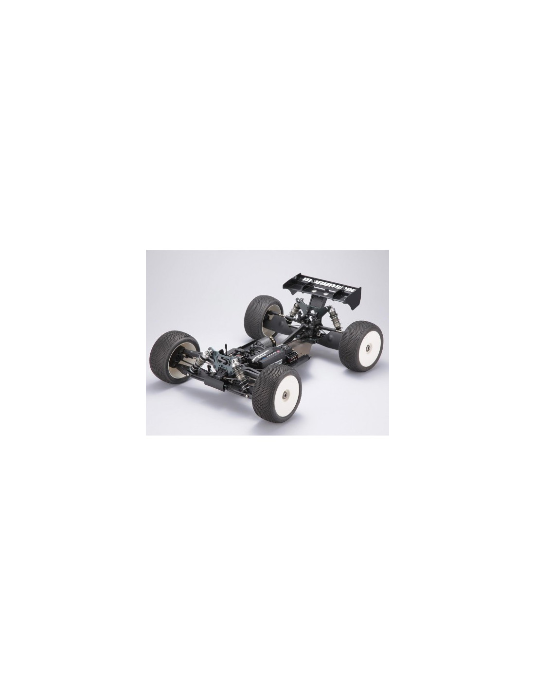 Los soportes de suspensión "C" y "D" utilizan píldoras cuadradas para aumentar la sintonización de la convergencia, el antisquat y la geometría. Los brazos delanteros y traseros utilizan un material resistente a impactos para una mayor durabilidad. Las torres moldeadas tienen placas de fibra de carbono para ajustar el centro de balance trasero.