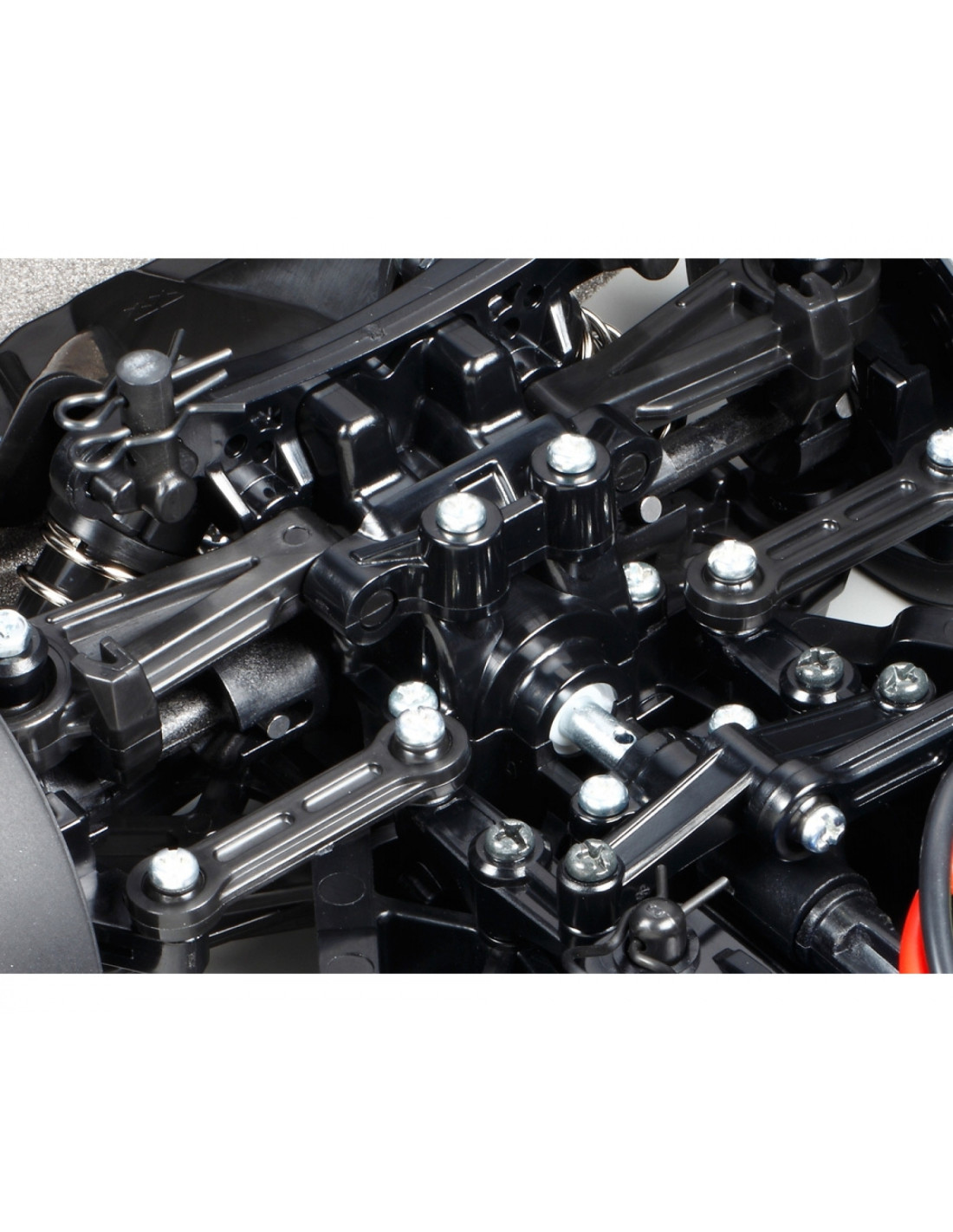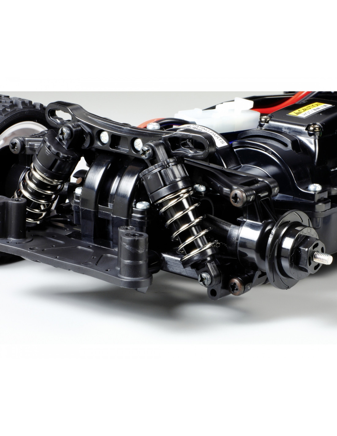- El modelo utiliza el eficiente chasis 4WD TT-02 accionado por eje que presenta una adaptabilidad y estabilidad superiores.