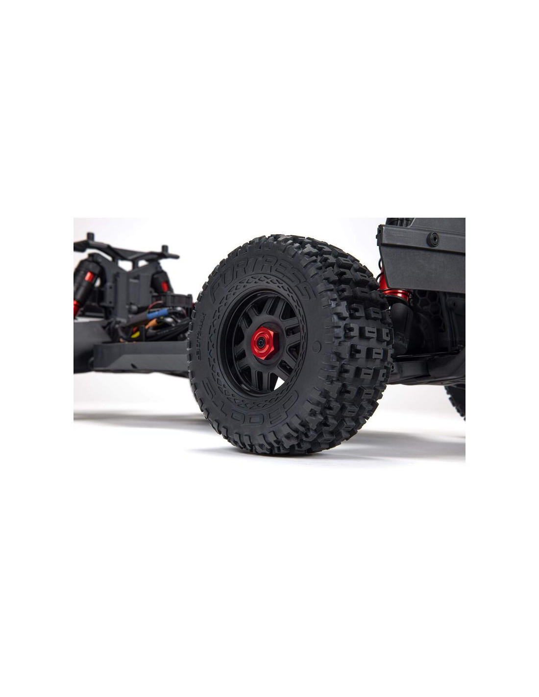 Se incluyen amortiguadores largos, de gran calibre, llenos de aceite y con cuerpo de aluminio, que se montan en torres de choque altas. Estos brazos de suspensión más anchos le dan al ARRMA MOJAVE 4S BLX 4X4 Desert Truck un recorrido de suspensión lujoso.