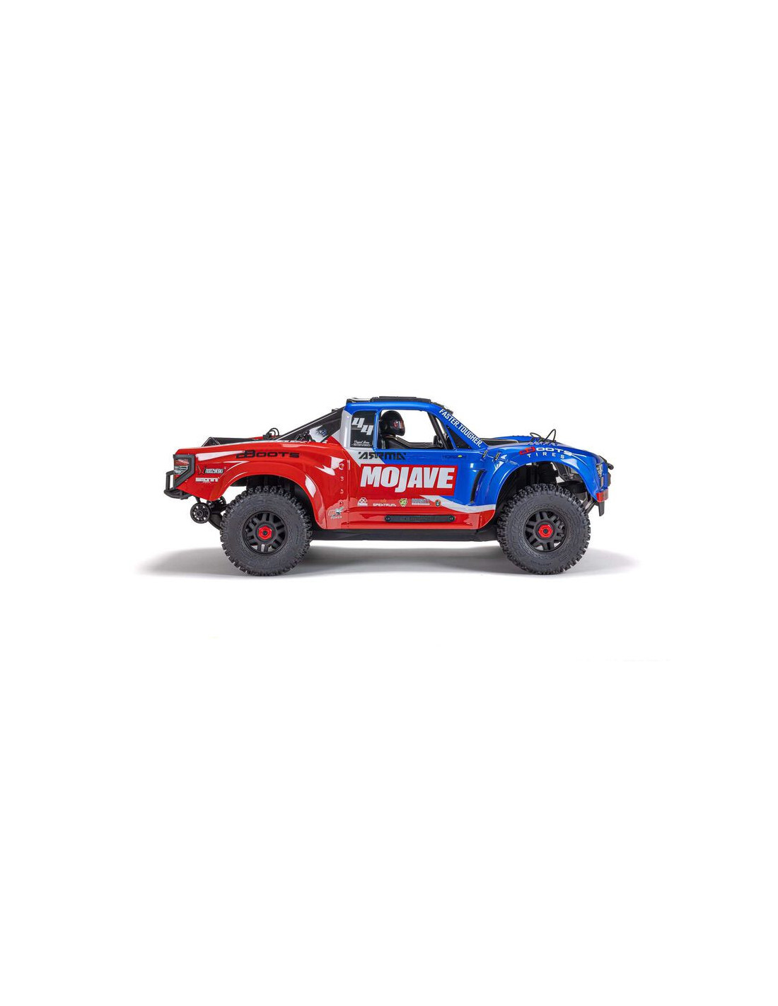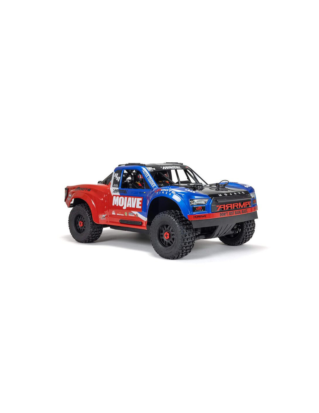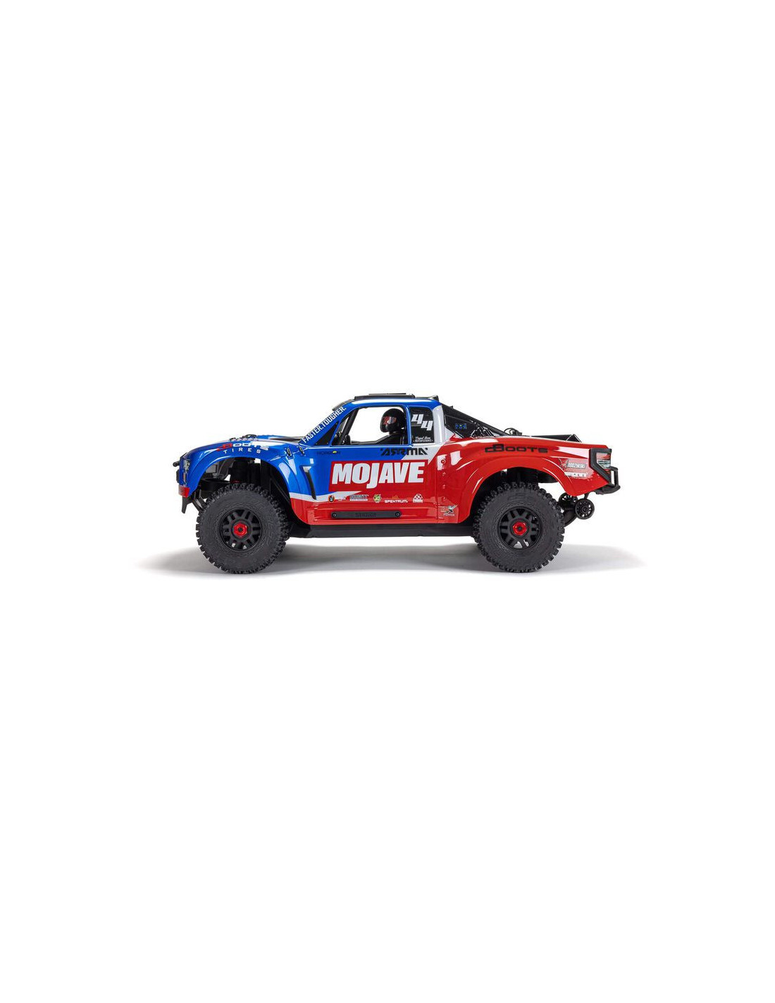 Disfrute de los golpes sin escobillas a lo grande con el asequible ARRMA® MOJAVE™ 4S BLX 4X4 Desert Truck RTR. Lo tiene todo: dureza legendaria, manejo dinámico y la velocidad brutal de un sistema de potencia sin escobillas compatible con Spektrum™ 4S que es capaz de alcanzar más de 50 mph en condiciones óptimas. Aún mejor, este paquete de alto rendimiento viene envuelto en un emocionante realismo de camión del desierto a escala 1/8, completo con una cabina detallada, además de una jaula antivuelco y rieles en el techo.