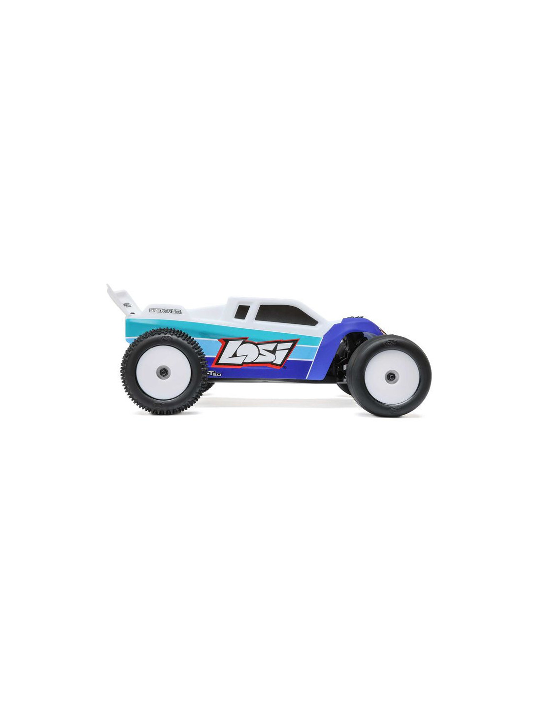 Alimente al corredor que lleva dentro con el asequible y listo para usar Losi® Mini-T™ 2.0 2WD Brushless Stadium Truck. Con la electrónica sin escobillas Spektrum™ incluida y un diseño TLR® inspirado en las carreras, tiene la velocidad, el manejo y el potencial de ajuste para ponerte a la cabeza.