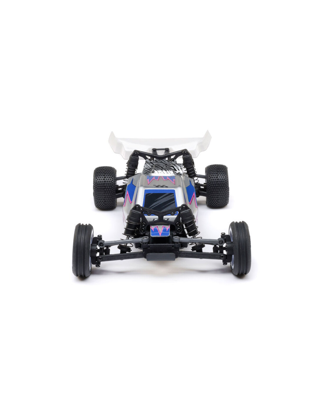 Aquí se captura la emoción total de las carreras RC en tamaño micro. Aspecto de buggy de carreras campeón del mundo. Velocidad máxima de más de 21 km/h. Construcción resistente que sobrevive a golpes y saltos. Capacidades de ajuste y puesta a punto que convierten su creciente experiencia en un rendimiento más potente.