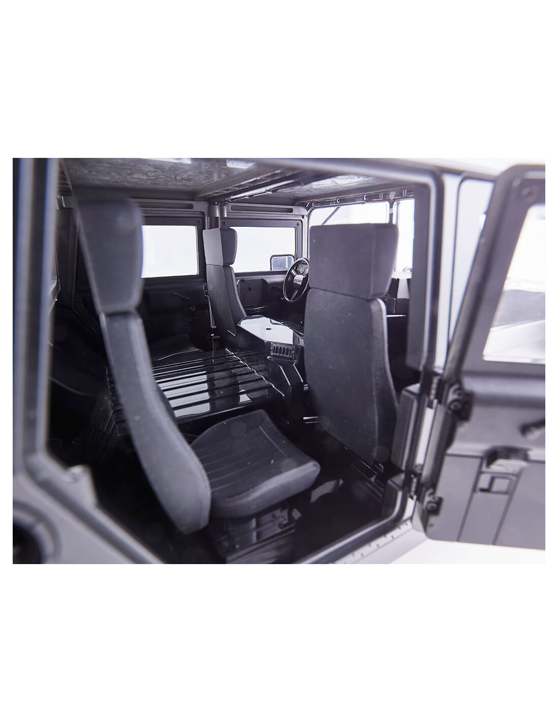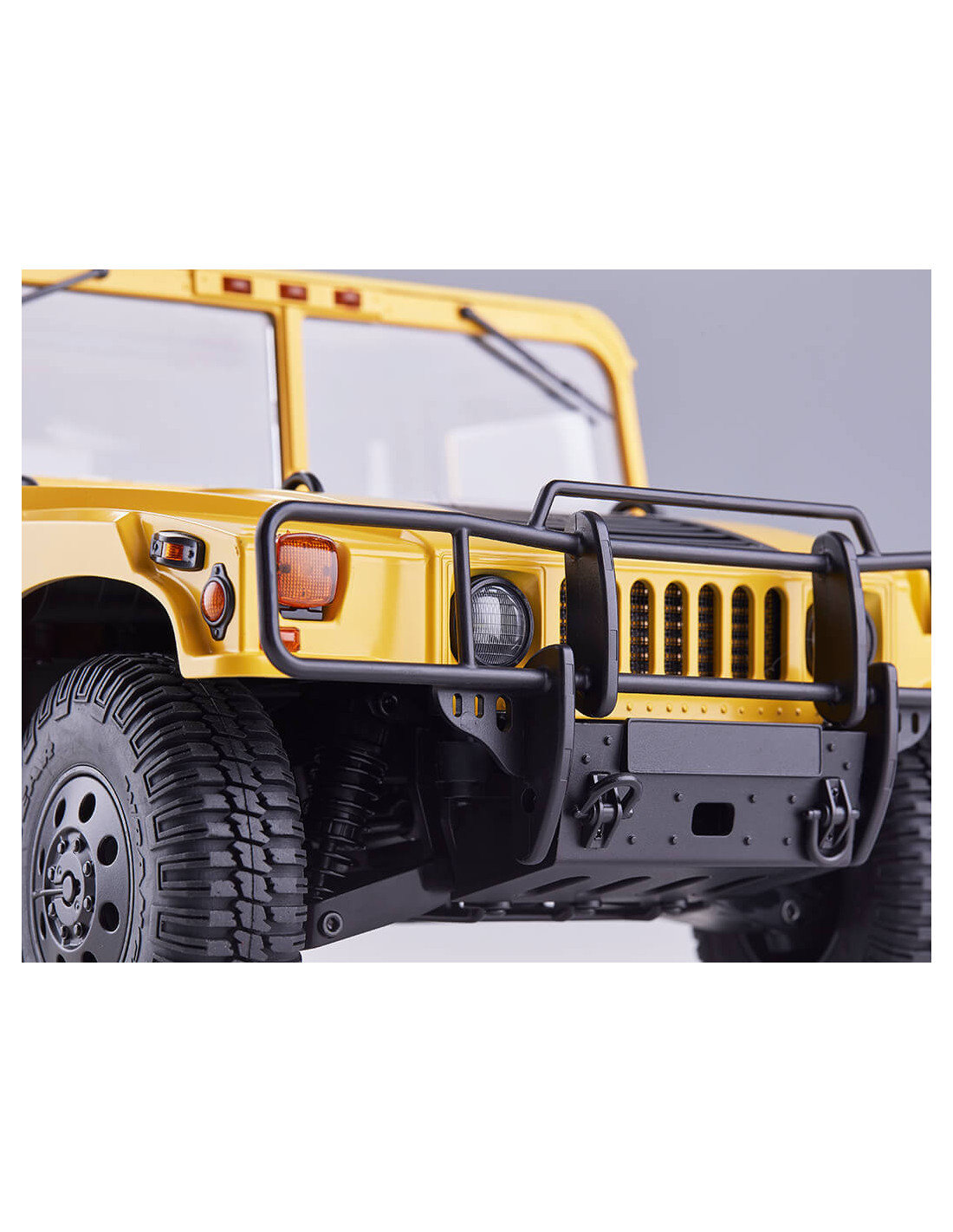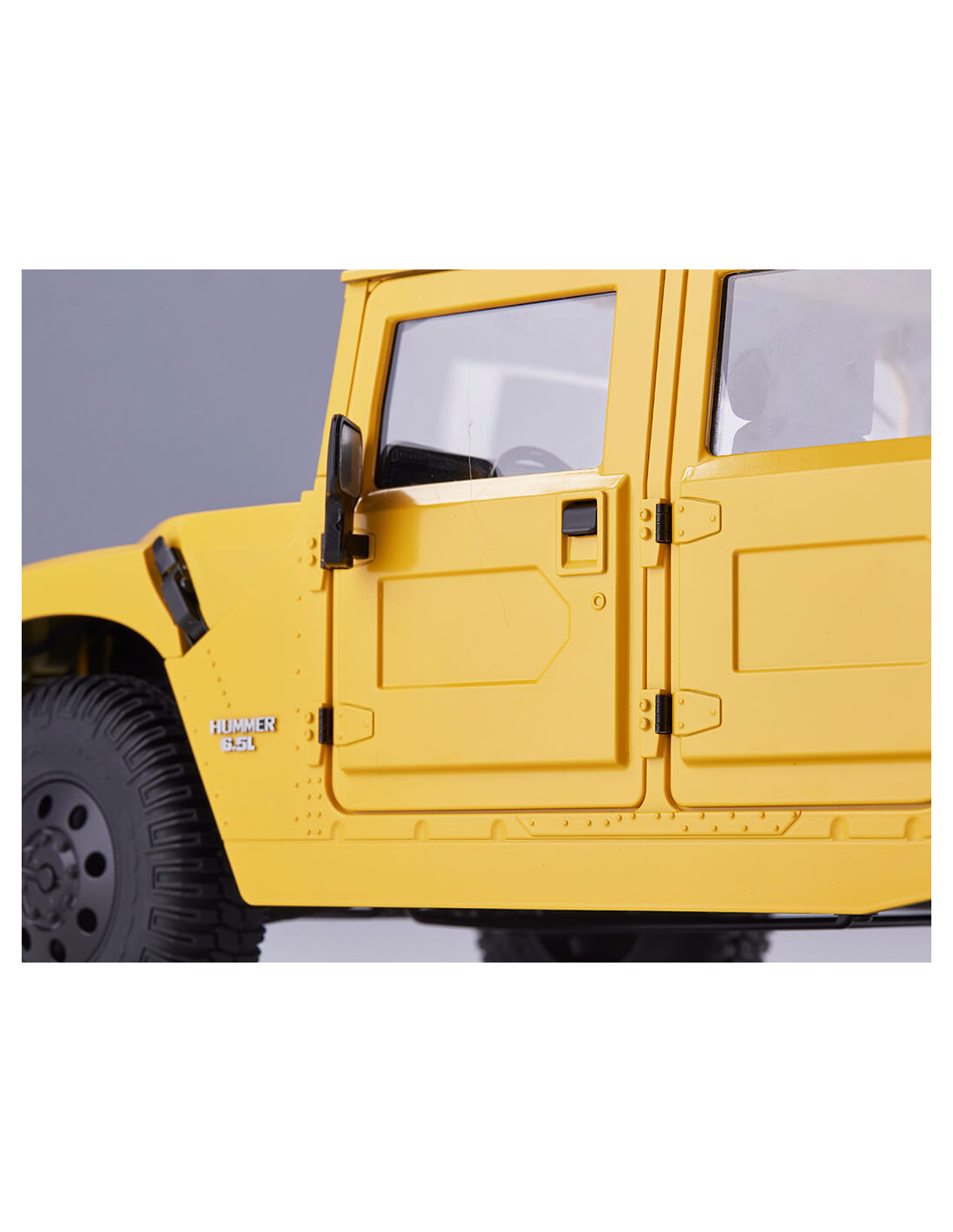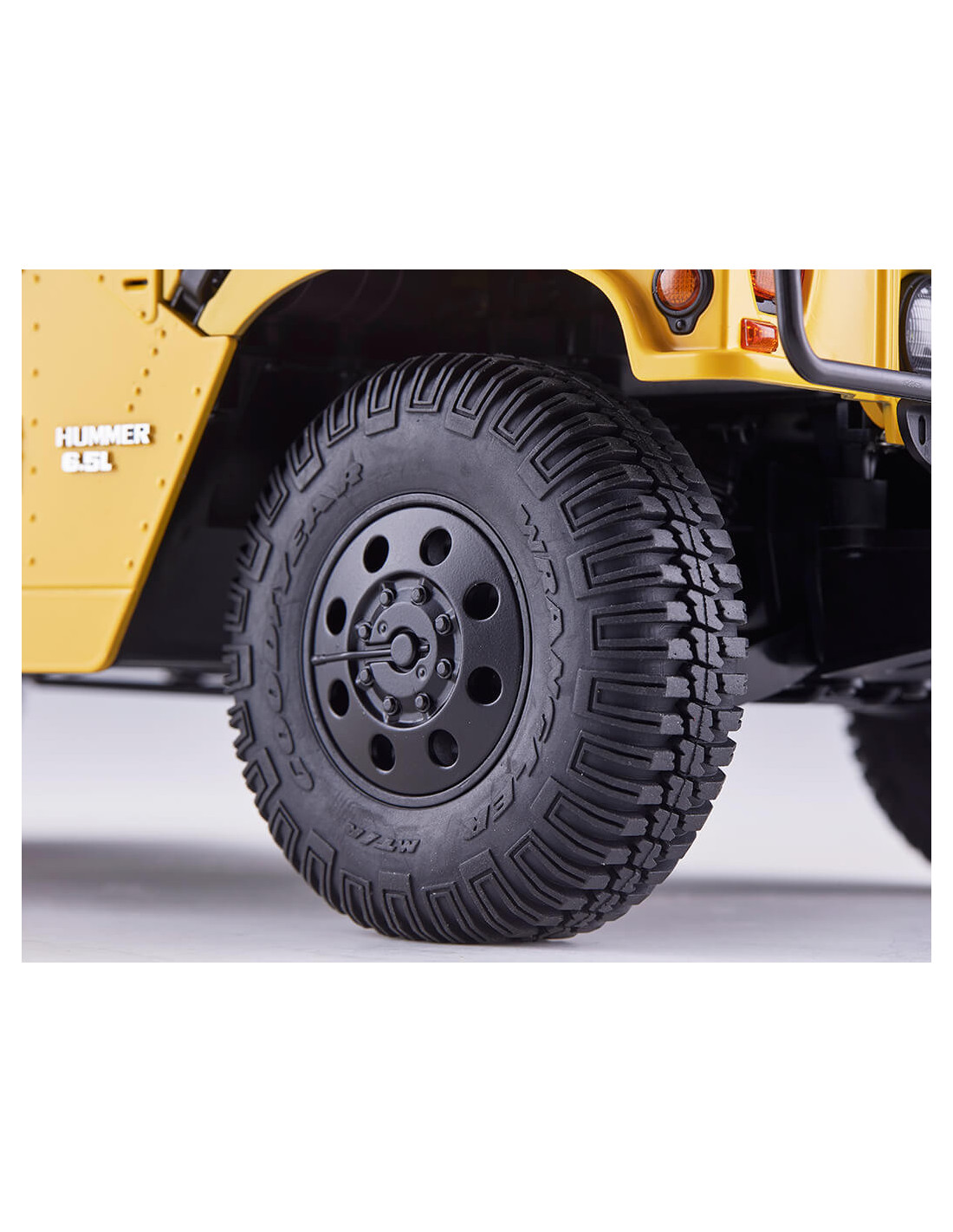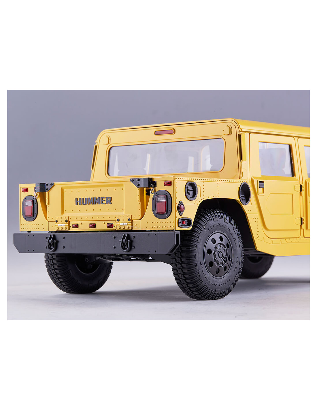 Para satisfacer a los entusiastas de la escala más críticos, tanto en el hobby como en la industria del RC a escala, la atención al detalle de este modelo fue primordial, incluso en el interior, perfectamente recreado. El HUMMER H1 utiliza un diseño de motor central delantero como el vehículo real y, para facilitar el mantenimiento, el capó está diseñado para plegarse hacia adelante. Al plegar el capó hacia arriba, el parachoques delantero también debe plegarse hacia adelante al mismo tiempo para evitar daños.