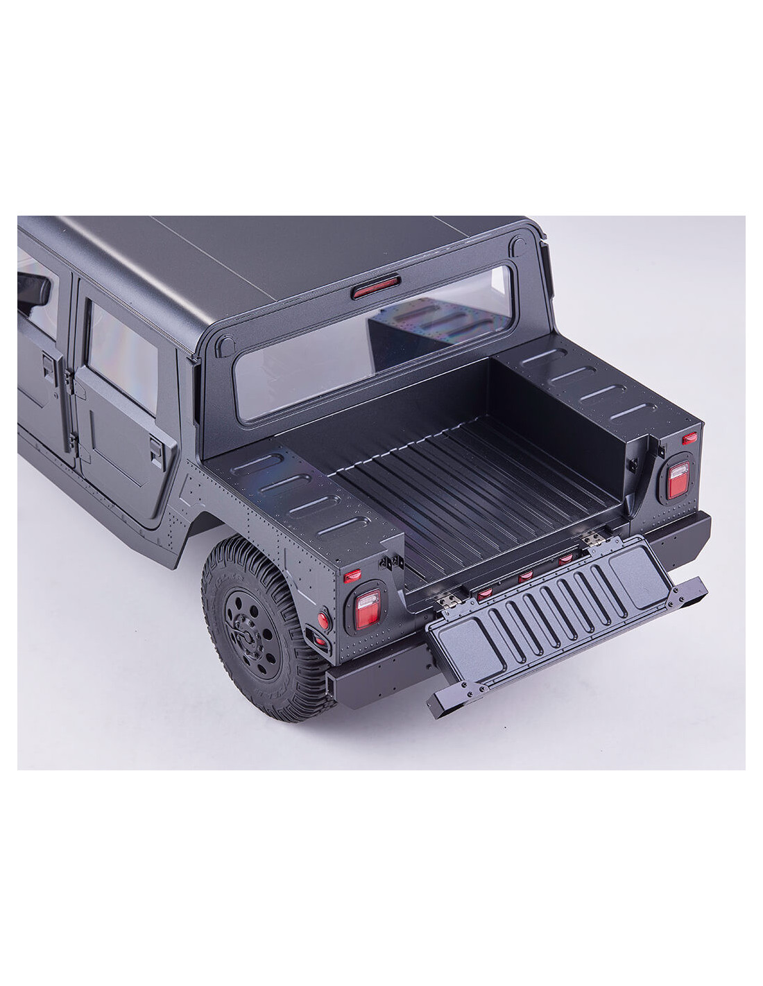 A diferencia de los vehículos a escala más comunes del mercado, este es un vehículo RC con un nivel de detalle muy alto que viene completo con una estructura de chasis y un sistema de transmisión a escala real, y un exquisito interior a escala con función de puerta completa. Con la insistencia de "apariencia perfecta, excelente rendimiento", el Hummer H1 de FMS se presenta como debe ser, un vehículo a escala "obra de arte" sin concesiones que seguramente será del agrado de coleccionistas y entusiastas por igual.