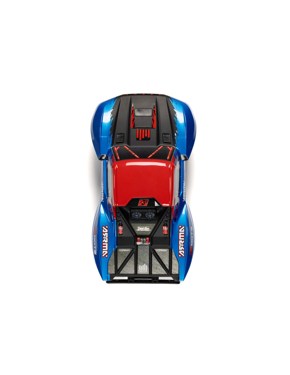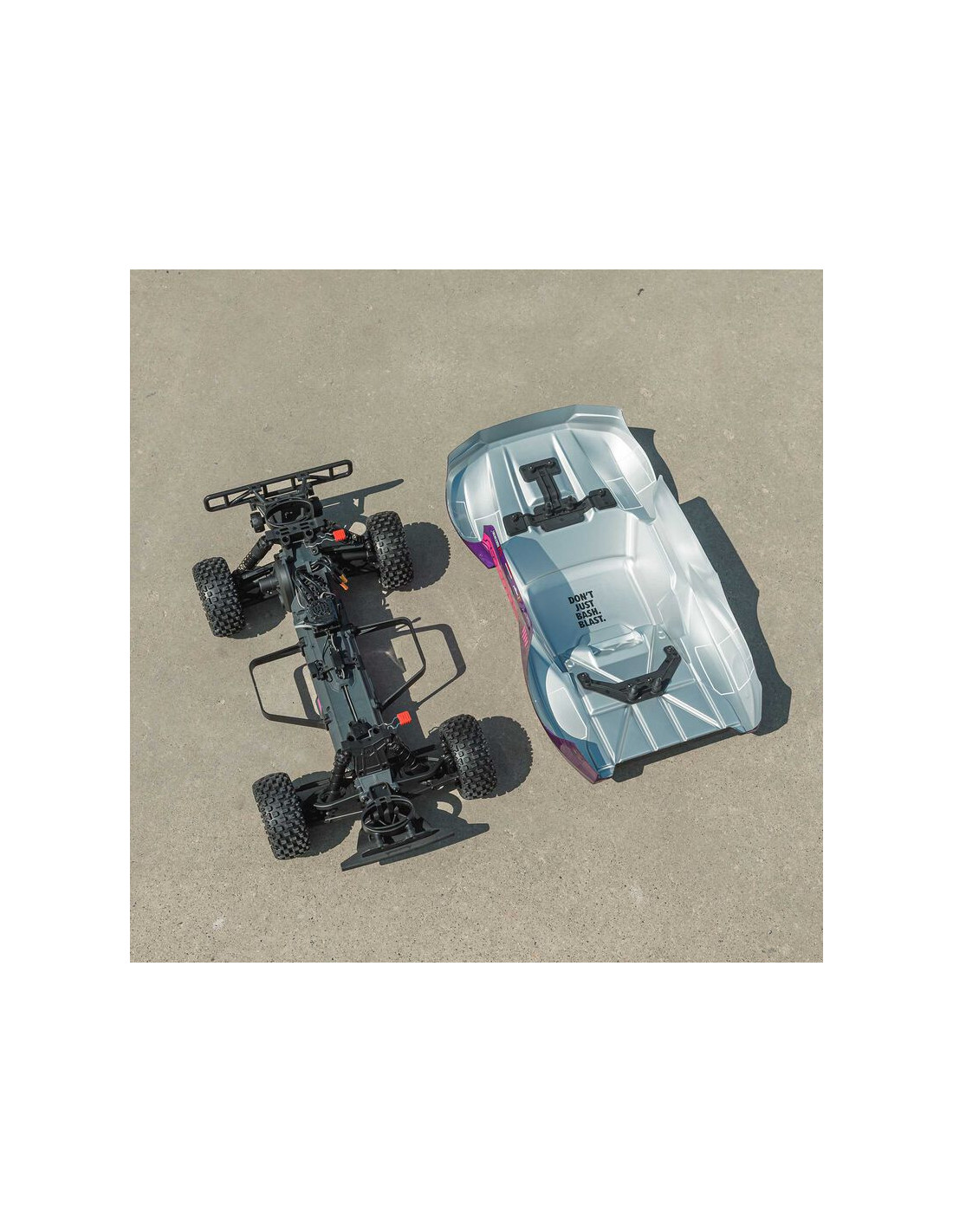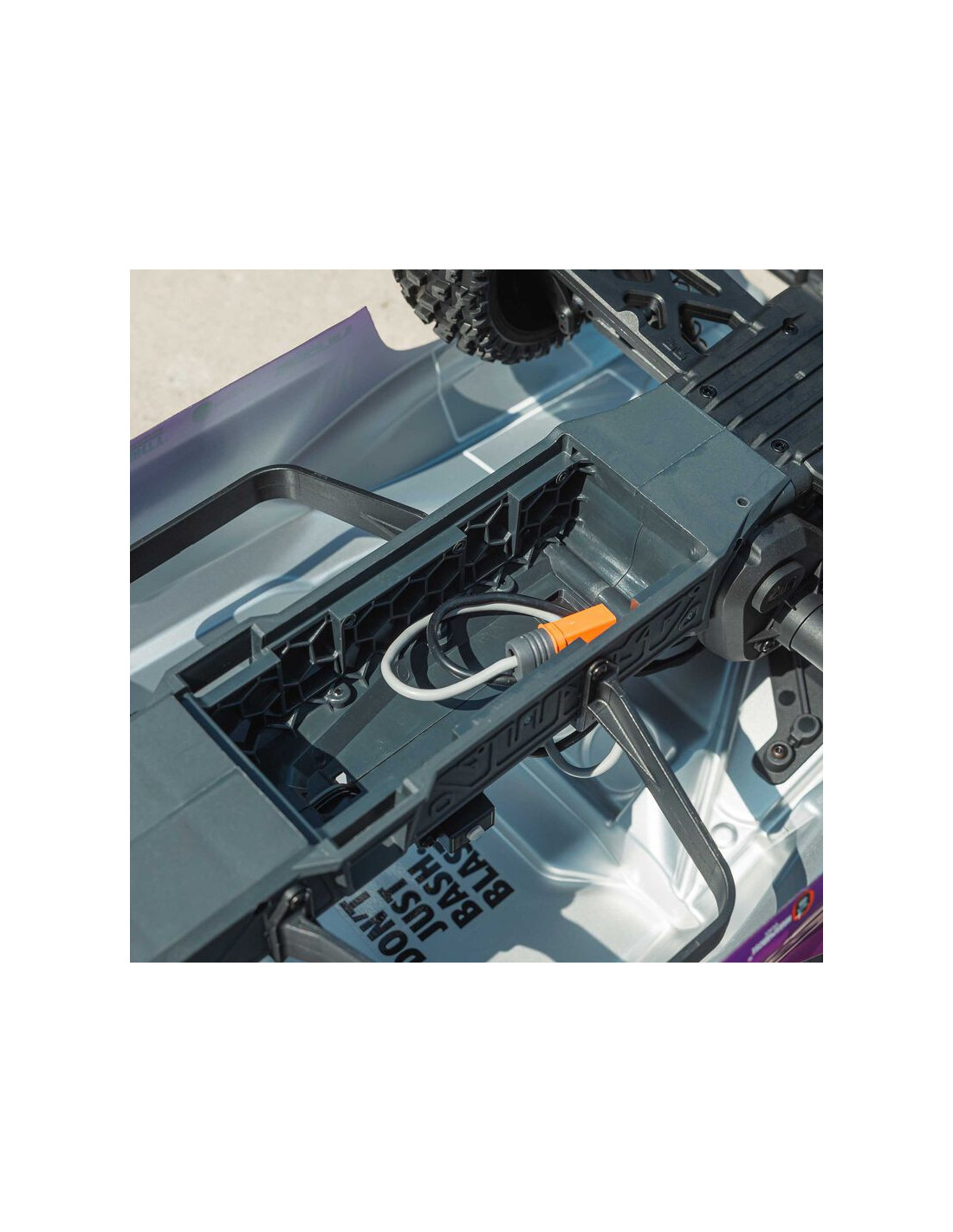 Para aumentar su emocionante realismo, la carrocería del camión de recorrido corto FURY 223S BLX se mantiene firmemente en su lugar mediante un sistema de retención de carrocería oculto. No es necesario quitar la carrocería para cambiar la batería, pero es fácil de quitar si necesita acceder a los componentes electrónicos integrados.
