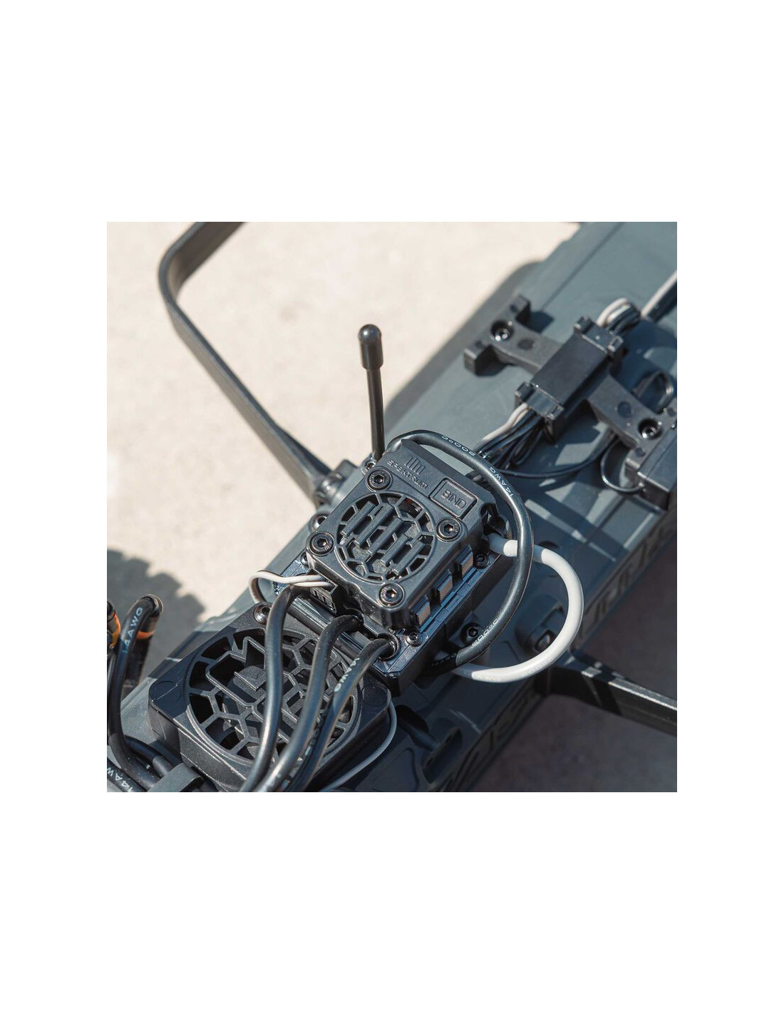 El diferencial de engranajes de metal resistente, ensamblado e instalado en fábrica, envía potencia desde el motor sin escobillas Spektrum de 4000 Kv a las ruedas traseras para atravesar terrenos difíciles. Todo el sistema de potencia está bien protegido para un rendimiento confiable en todo tipo de terrenos.