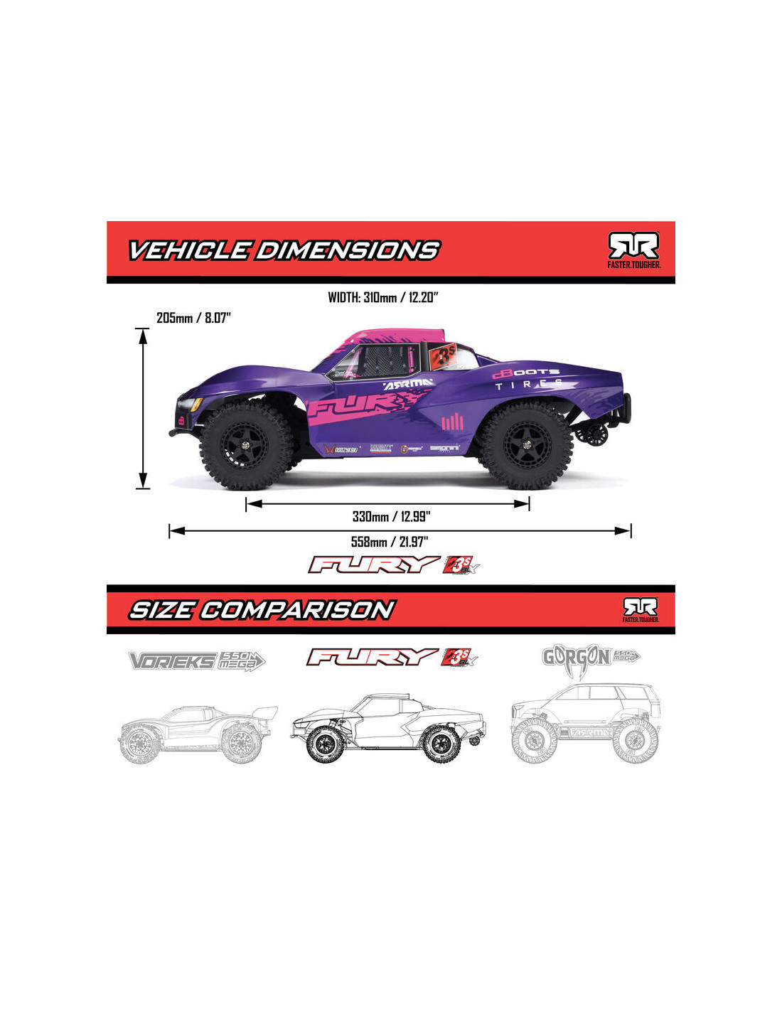 Todo el mundo puede disfrutar de la diversión de los circuitos cortos sin escobillas con el FURY 223S BLX. Como todos los vehículos ARRMA, está diseñado para ser rápido y resistente, listo para ofrecer a los conductores de RC sin escobillas, tanto nuevos como experimentados, un rendimiento mejorado desde el primer momento.