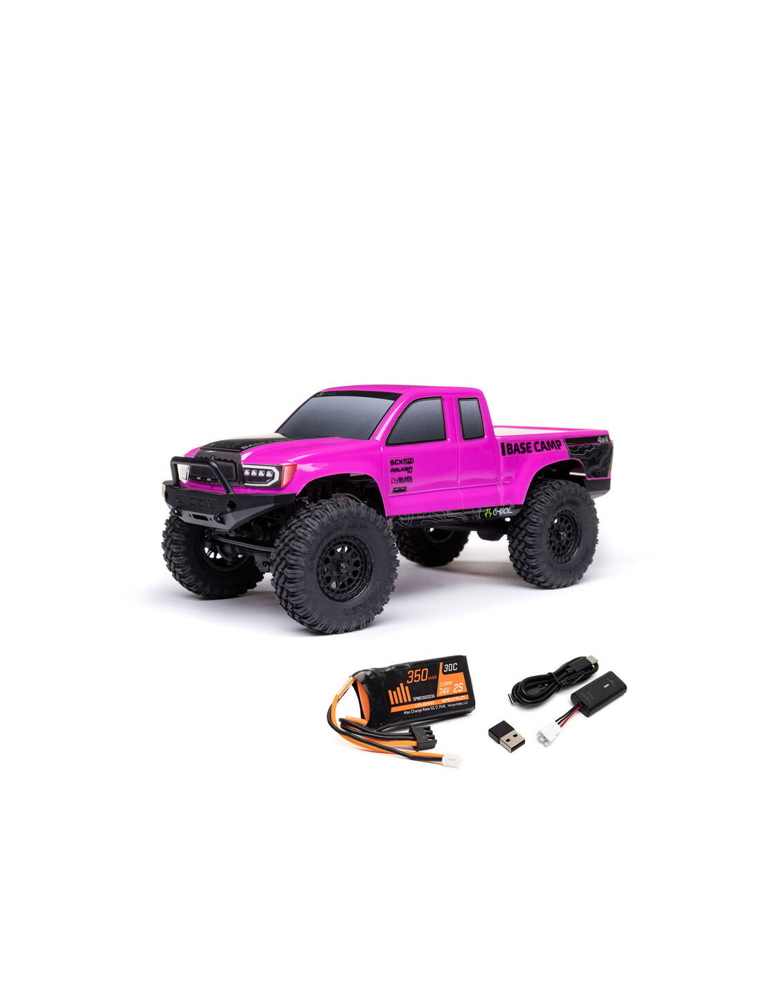 AXIAL 1/24 SCX24 BASE CAMP 4WD ROCK CRAWLER BRUSHED RTR CON BATERIA Y CARGADOR ROSA