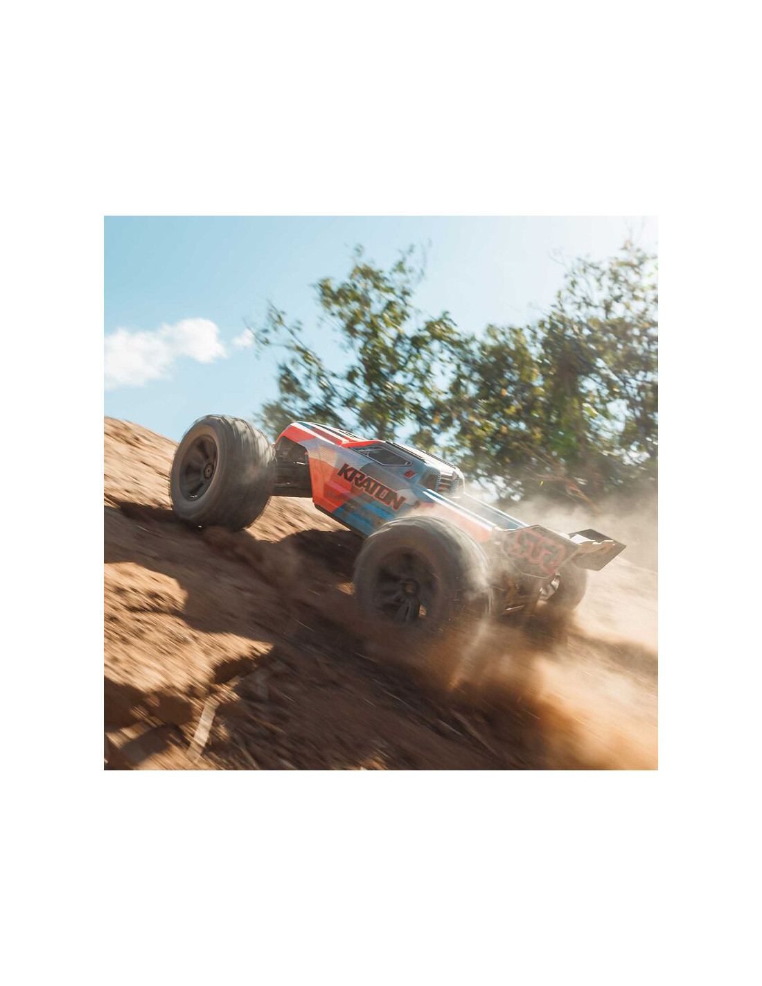 Lleva el KRATON 6S BLX 4X4 listo para usar a cualquier terreno, incluido asfalto, tierra, grava o pasto corto. Coloca algunas rampas o construye algunos montículos en la tierra: establece un nuevo récord de larga distancia cada vez que saltes. Con la batería y el cargador 4S o 6S que elijas, tendrás todo lo que necesitas para disfrutar de la emoción de un monster truck de la manera en que solo ARRMA lo hace.