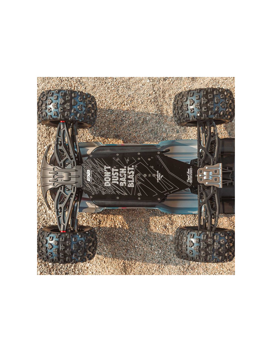 Esta nueva versión del camión monstruo de velocidad KRATON 6S BLX 4X4 a escala 1/8 incluye más mejoras EXB (Extreme Bash) para una mayor resistencia. La placa del chasis, la placa protectora, los diferenciales, el parachoques delantero y el soporte del alerón son incluso más resistentes que antes para sobrevivir a los golpes brutales y a las grandes ráfagas.