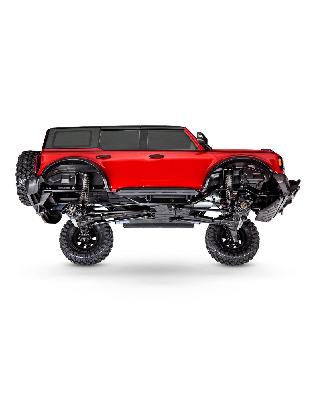 TRX-4 Scale and Trail ® con carrocería Ford ® Bronco: camión todoterreno 4X4 a escala 1/10, totalmente ensamblado , electrónica resistente al agua, Ready-To-Drive ® , con sistema de radio TQi ™ de 2,4 GHz y 4 canales , control de velocidad XL-5 ™ HV, transmisión alta/baja, diferenciales con bloqueo remoto y carrocería pintada.