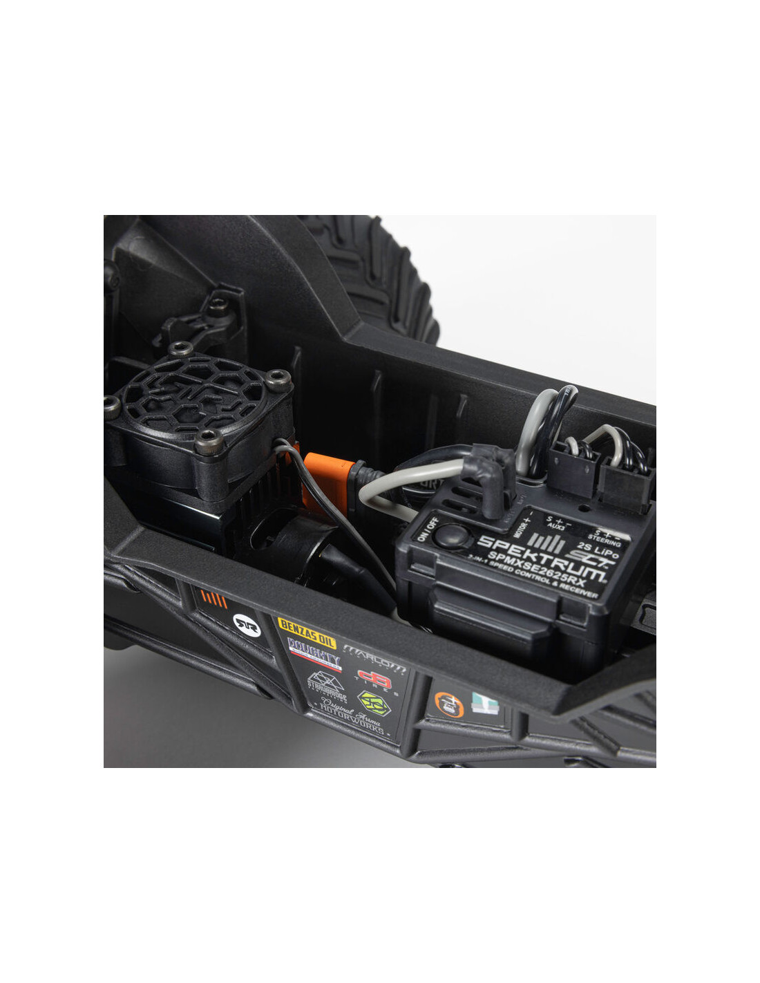 Esta camioneta ofrece todo lo que buscan los nuevos conductores: configuración rápida, una experiencia lista para usar y componentes diseñados tanto para principiantes como para aficionados. La carrocería de liberación rápida se monta y desmonta fácilmente: no perderás pasadores ni tendrás que batallar con herramientas para cambiar la batería. La bandeja de la batería tiene dos cierres que se abren, así que incluso si la camioneta se cae o se sale de control, la carrocería y la batería se mantienen seguras y listas para más salidas.