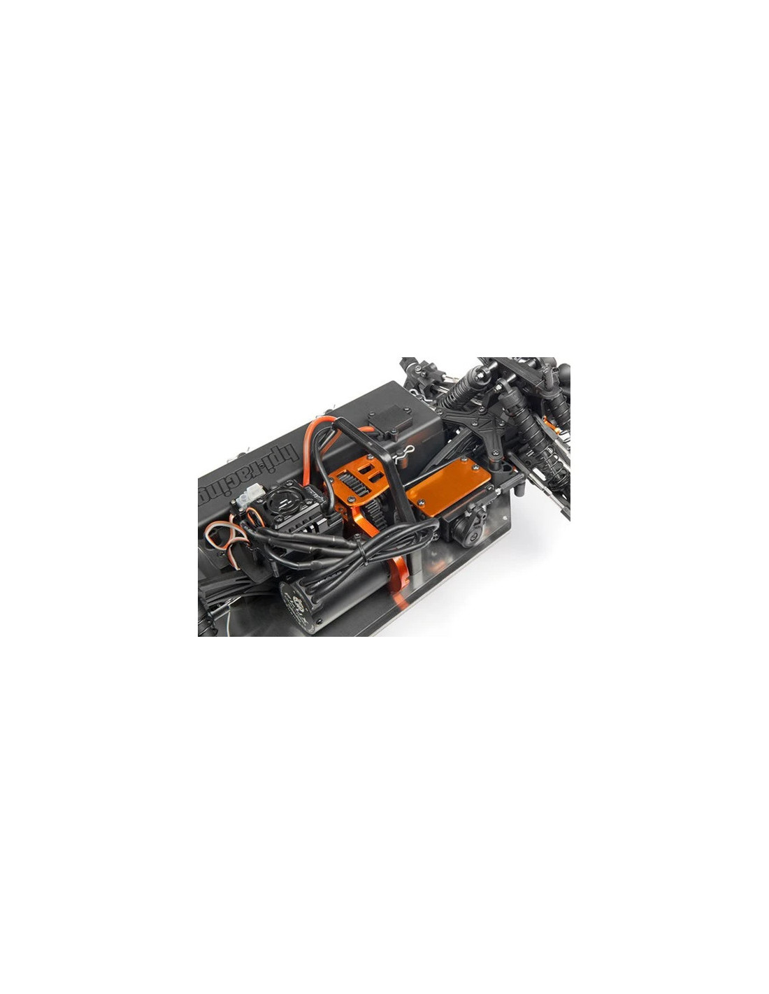 La Bullet Flux está repleta de características, con cada componente colocado exactamente donde tiene que estar para tener la distribución de peso perfecta de delante a atrás y de lado a lado. El servo de dirección está colocado en una configuración "tumbada" para un centro de gravedad bajo, y el peso del motor y la batería se equilibran a ambos lados del chasis. El regulador de velocidad está colocado en la parte trasera del chasis, a lo largo de la línea central, donde puede obtener la mayor cantidad de aire de refrigeración, así como protección contra el barro y la suciedad que levantan los neumáticos delanteros.