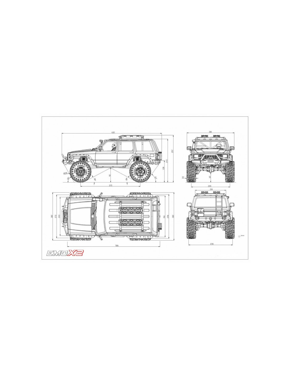 El Rhino EMO X 2 presenta la apariencia de un todoterreno clásico, con un estilo competitivo, un piloto de carreras simulado y una hebilla oculta en la carcasa. La carcasa está fabricada con materiales de policarbonato engrosados de alta calidad. El vehículo está equipado de serie con un sistema de iluminación de flash controlado independientemente por un solo canal.