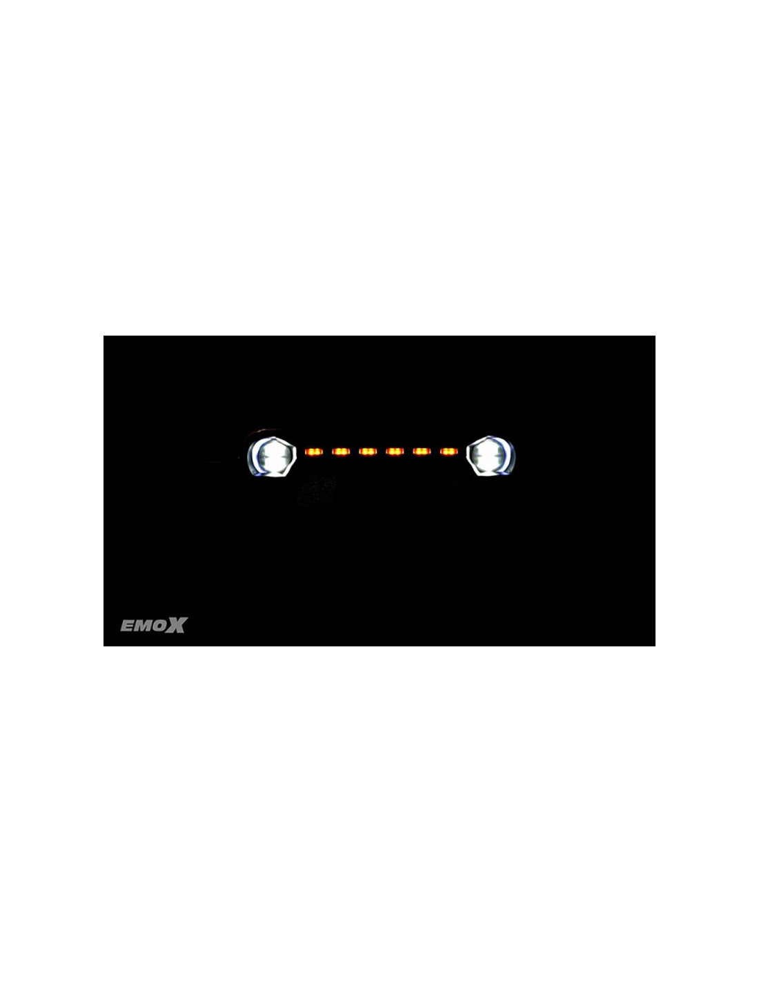 El Rhino EMO X utiliza la apariencia de un vehículo todoterreno clásico, con un estilo competitivo de modificación, con un piloto de carreras simulado, una hebilla de carcasa oculta, una llanta de repuesto de tamaño completo, resistente y agresivo. La carcasa está hecha de materiales de PC engrosados de alta calidad. El vehículo está equipado de serie con un sistema de iluminación de flash genial controlado de forma independiente por un solo canal, que es un interruptor de flash y flash de un solo brillo, brillo completo