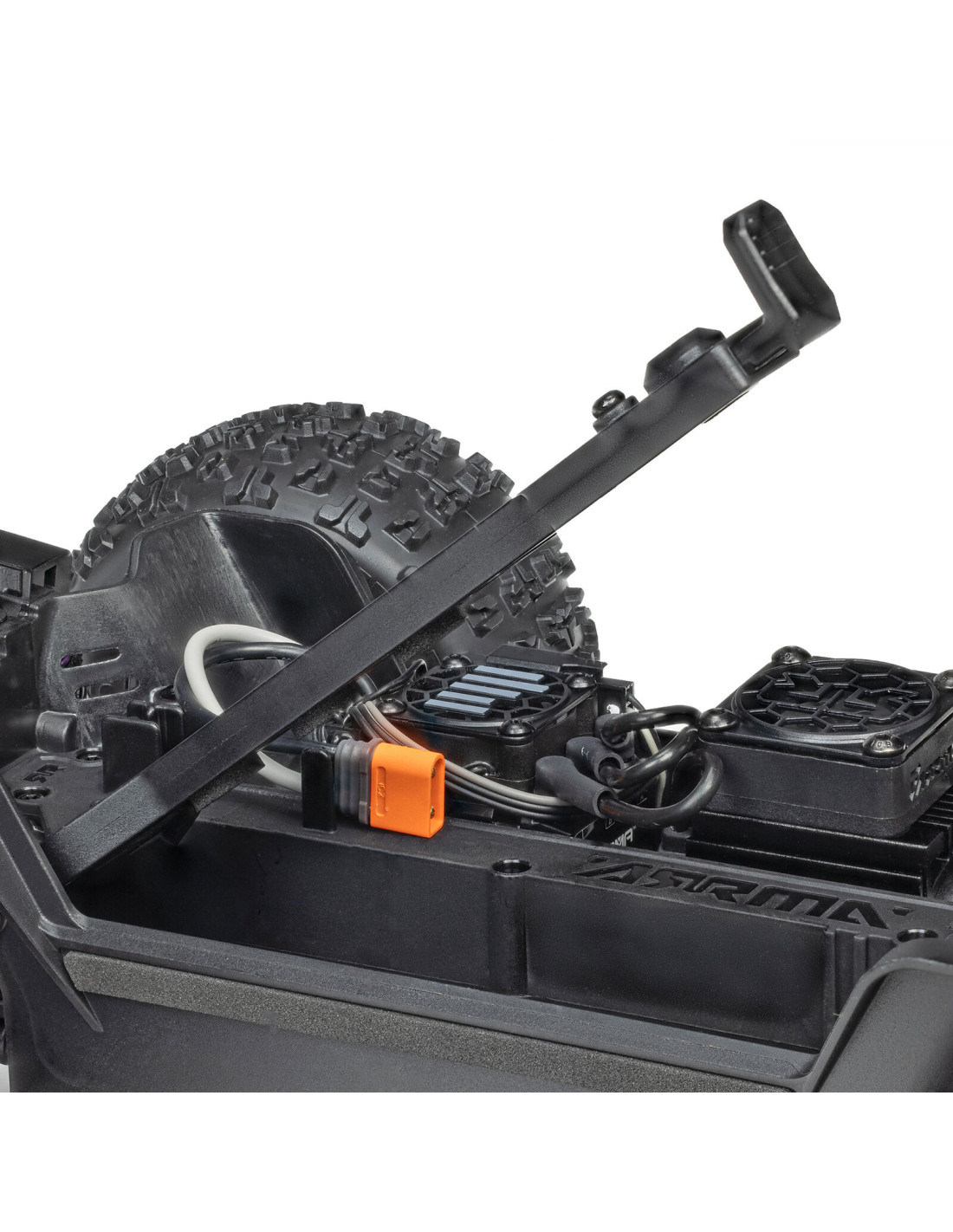 Su diseño compacto esconde todo el arsenal de la fuerza de ARRMA. El mini chasis utiliza componentes reforzados y parachoques de alta resistencia para una durabilidad que te permite darlo todo sin pensarlo dos veces. La carrocería agresiva viene con una llamativa pintura de fábrica y un sistema de liberación rápida sin clip para paradas rápidas en boxes y presumir aún más rápido.