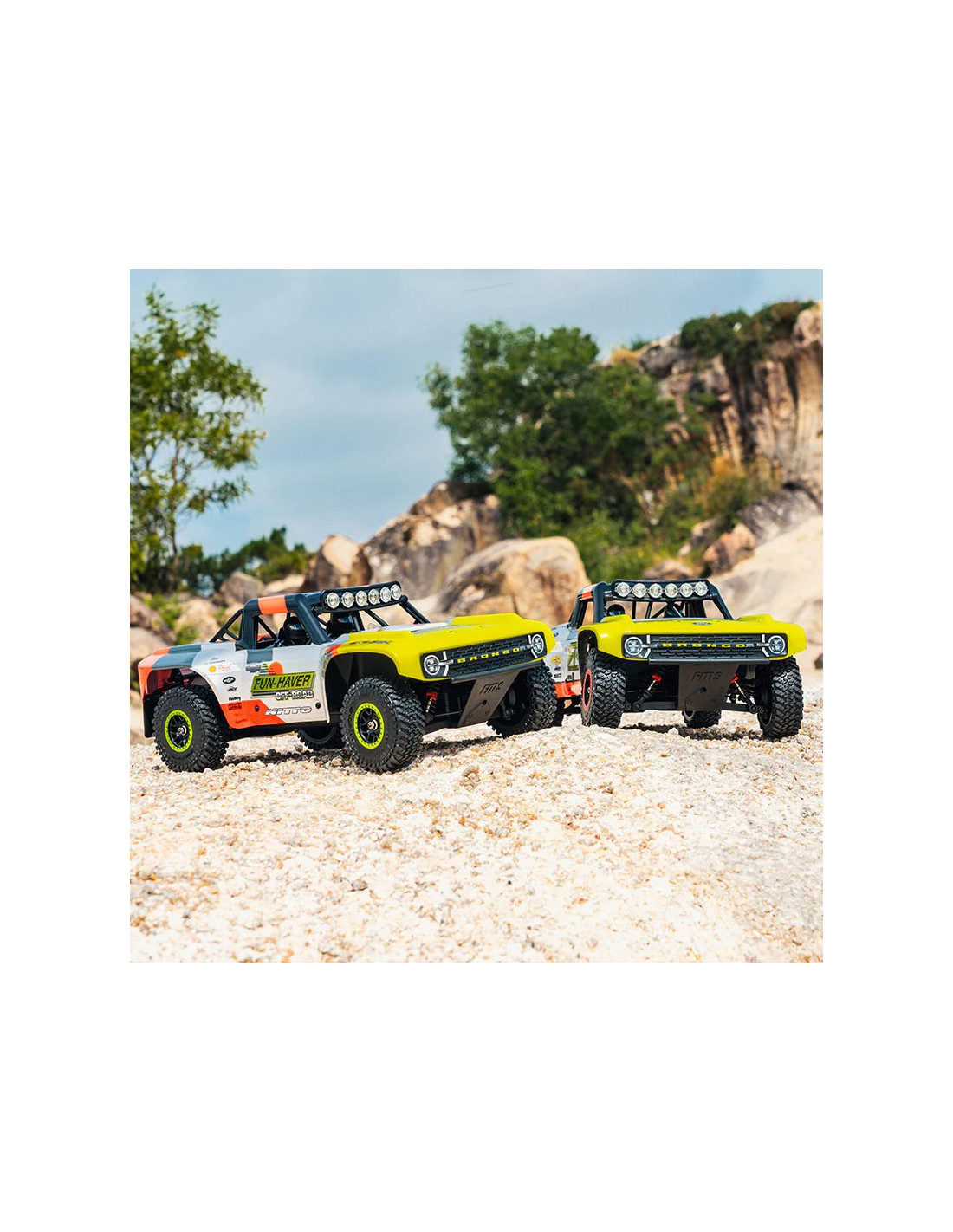 Ya sea que estés recorriendo senderos en el patio trasero, jardines de rocas o llanuras desérticas, el Ford Bronco RTR Fun-Haver EB a escala 1/18 ofrece una gran energía en una escala pequeña, con un estilo y un rendimiento que hacen honor a su nombre.