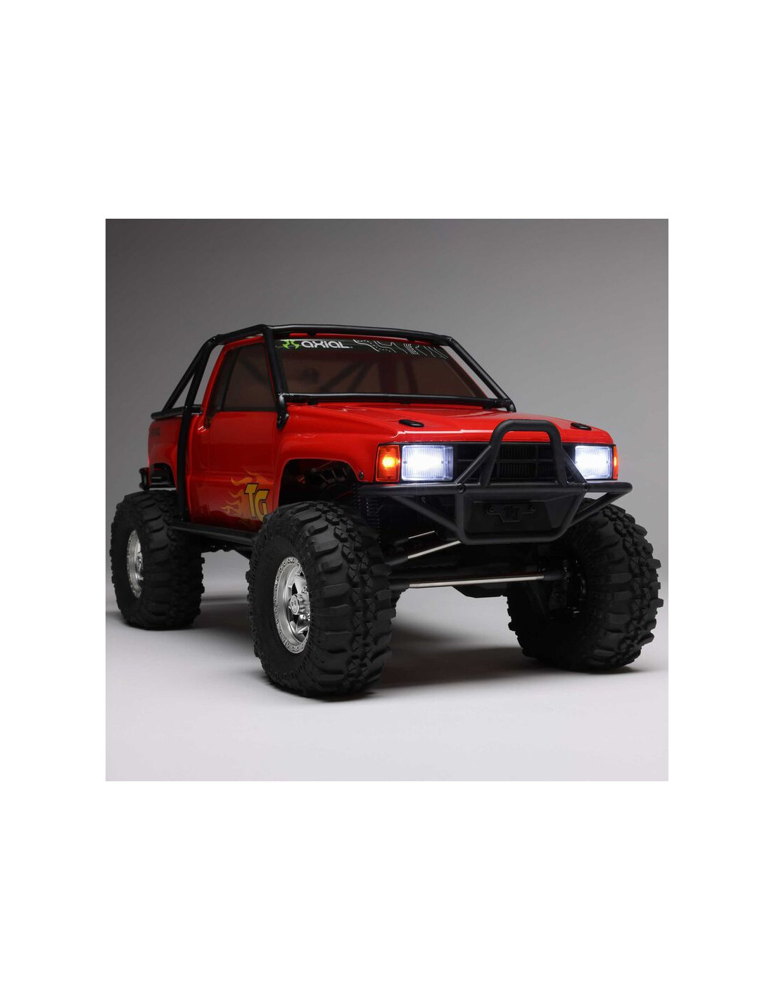 Este es el primer vehículo a escala 1/10 con licencia oficial que Axial ofrece de Toyota. Este conjunto de carrocería incluye piezas moldeadas a escala, como la parrilla, los faros delanteros, las luces traseras, la jaula antivuelco externa y los cierres del capó.