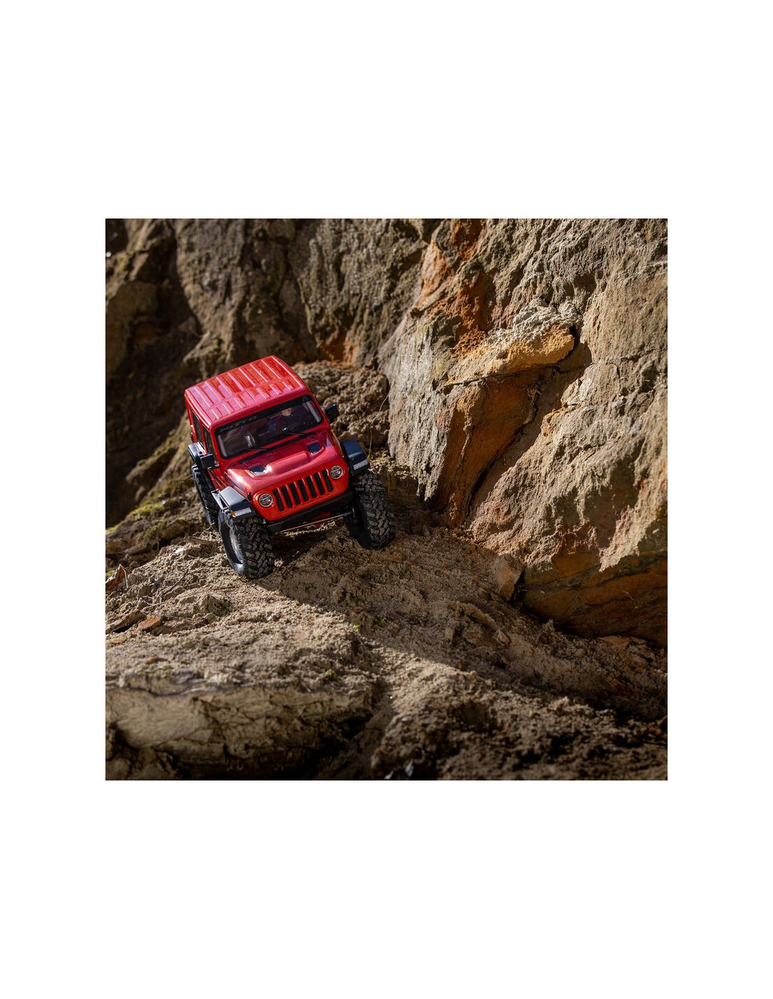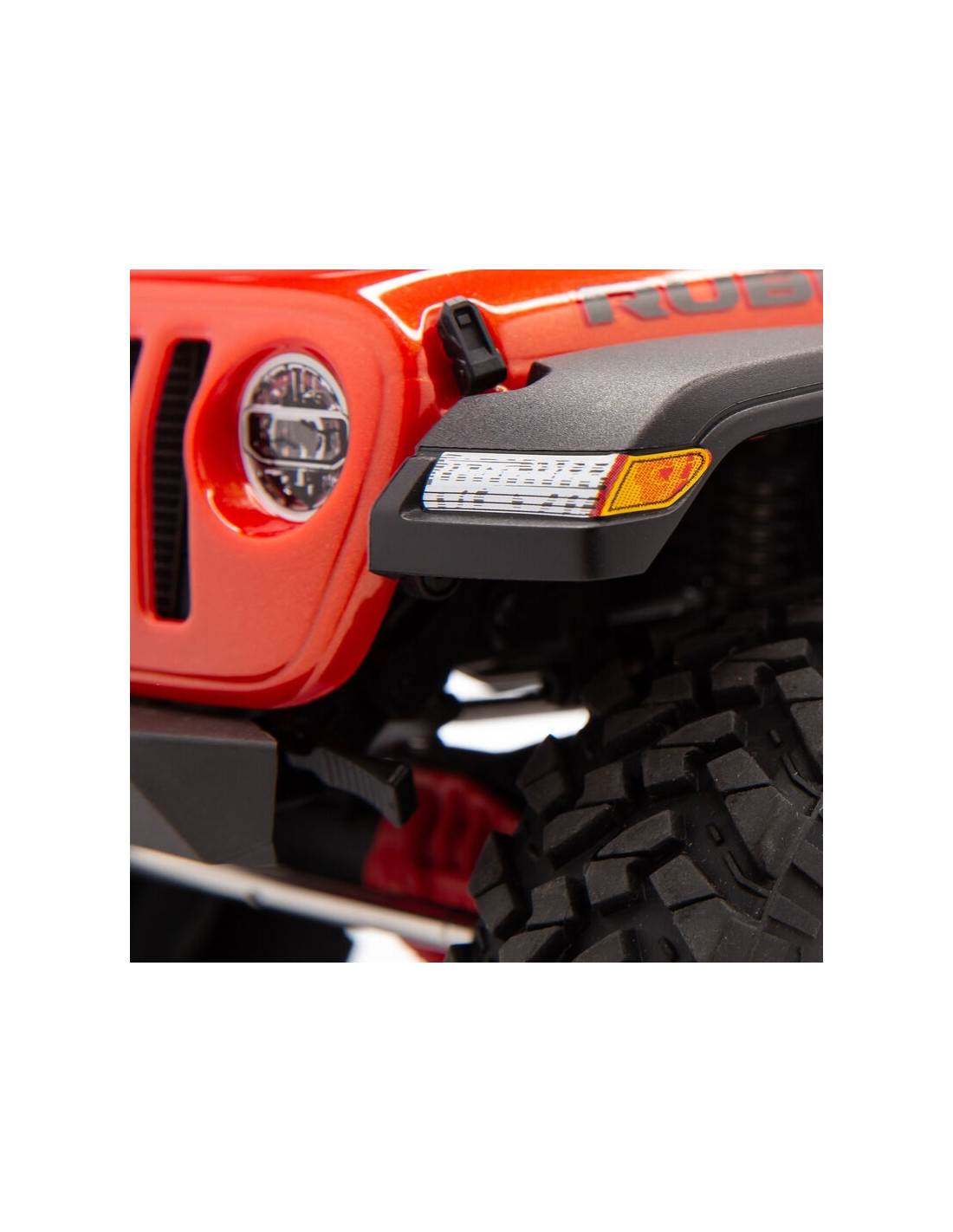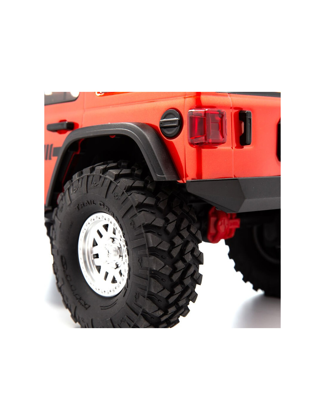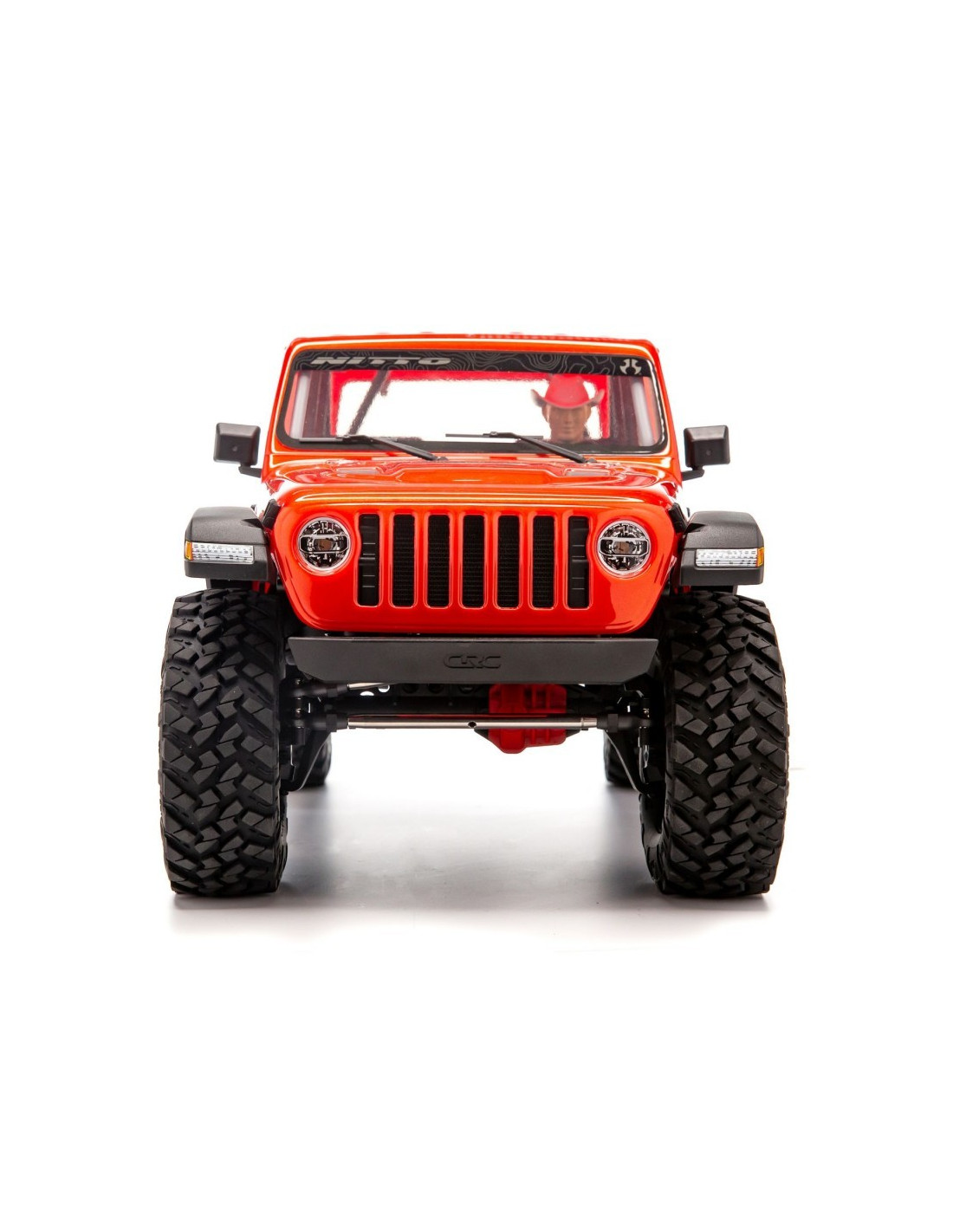 El chasis está rematado con una carrocería de cuatro puertas Jeep ® Wrangler Unlimited que incluye una jaula antivuelco, rejillas de ventilación y capó delanteros, limpiaparabrisas, espejos, manijas de las puertas y otros detalles moldeados, además de un interior detallado e iluminación LED. Los nuevos neumáticos Nitto Trail Grappler, más altos y anchos, con licencia oficial, en ruedas beadlock de 3 piezas agregan más realismo a escala y más agarre en tierra, rocas y todos los demás senderos todoterreno.