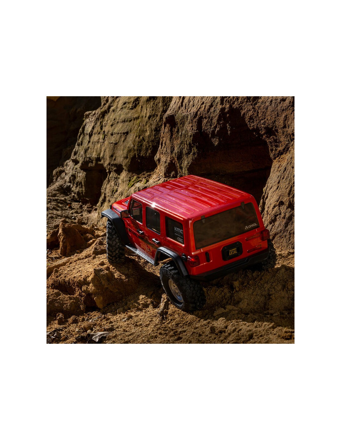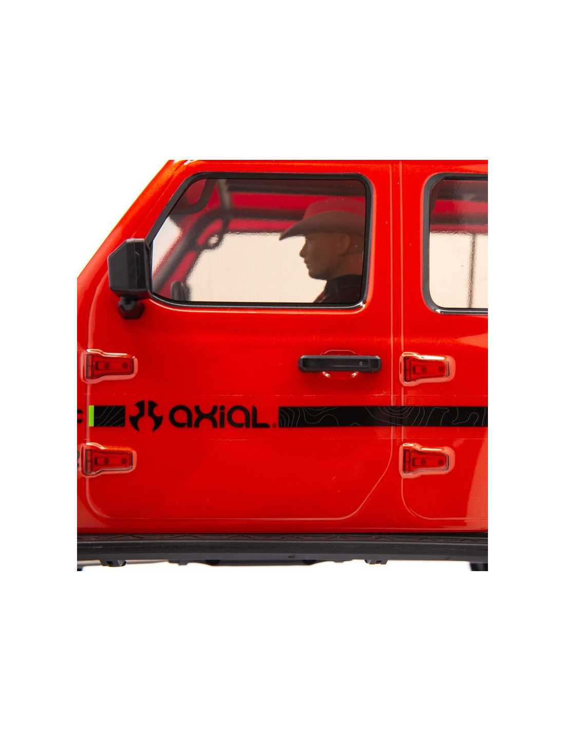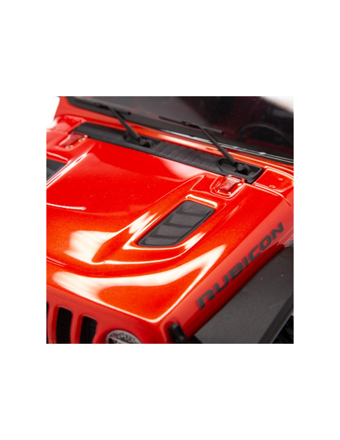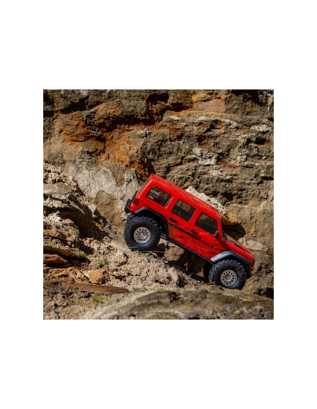 El chasis está rematado con una carrocería de cuatro puertas Jeep ® Wrangler Unlimited que incluye una jaula antivuelco, rejillas de ventilación y capó delanteros, limpiaparabrisas, espejos, manijas de las puertas y otros detalles moldeados, además de un interior detallado e iluminación LED. Los nuevos neumáticos Nitto Trail Grappler, más altos y anchos, con licencia oficial, en ruedas beadlock de 3 piezas agregan más realismo a escala y más agarre en tierra, rocas y todos los demás senderos todoterreno.