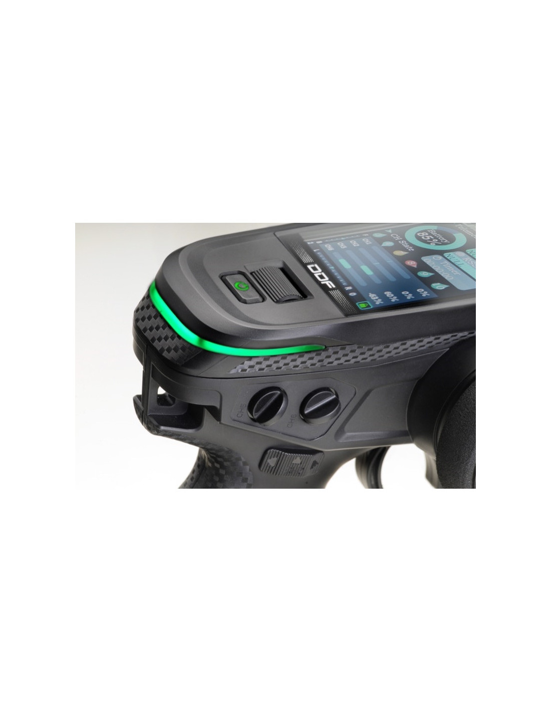 La gran pantalla en color de 4,0 x 5,3 cm muestra claramente todos los parámetros importantes. La navegación del menú se divide en 3 partes, que son fáciles de entender. El menú principal se centra en configuraciones cotidianas, como configuraciones de ajuste y canales, mientras que el menú del modelo se concentra en funciones especiales del vehículo, como configuraciones MIX. El tercer menú es responsable de la configuración básica del control remoto. Aquí se pueden realizar, entre otras cosas, ajustes de alarma, visualización y sonido.