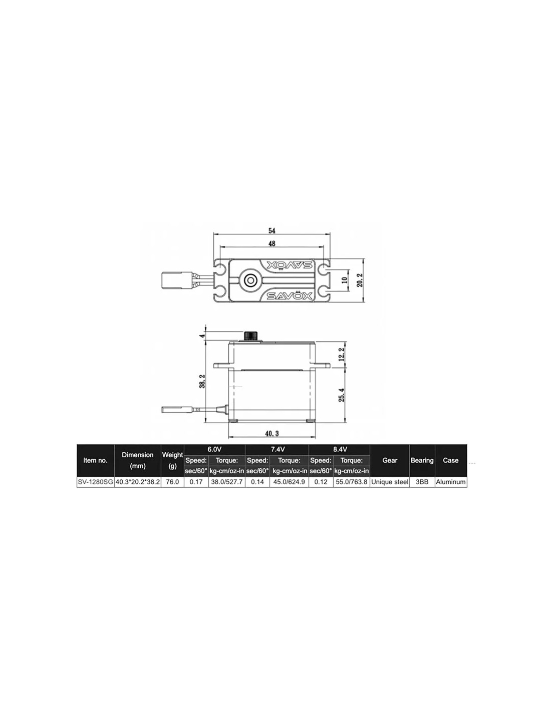 SV-1280SG SERVO SAVOX Digital Alto Voltaje Motor sin núcleo Engranaje de acero
