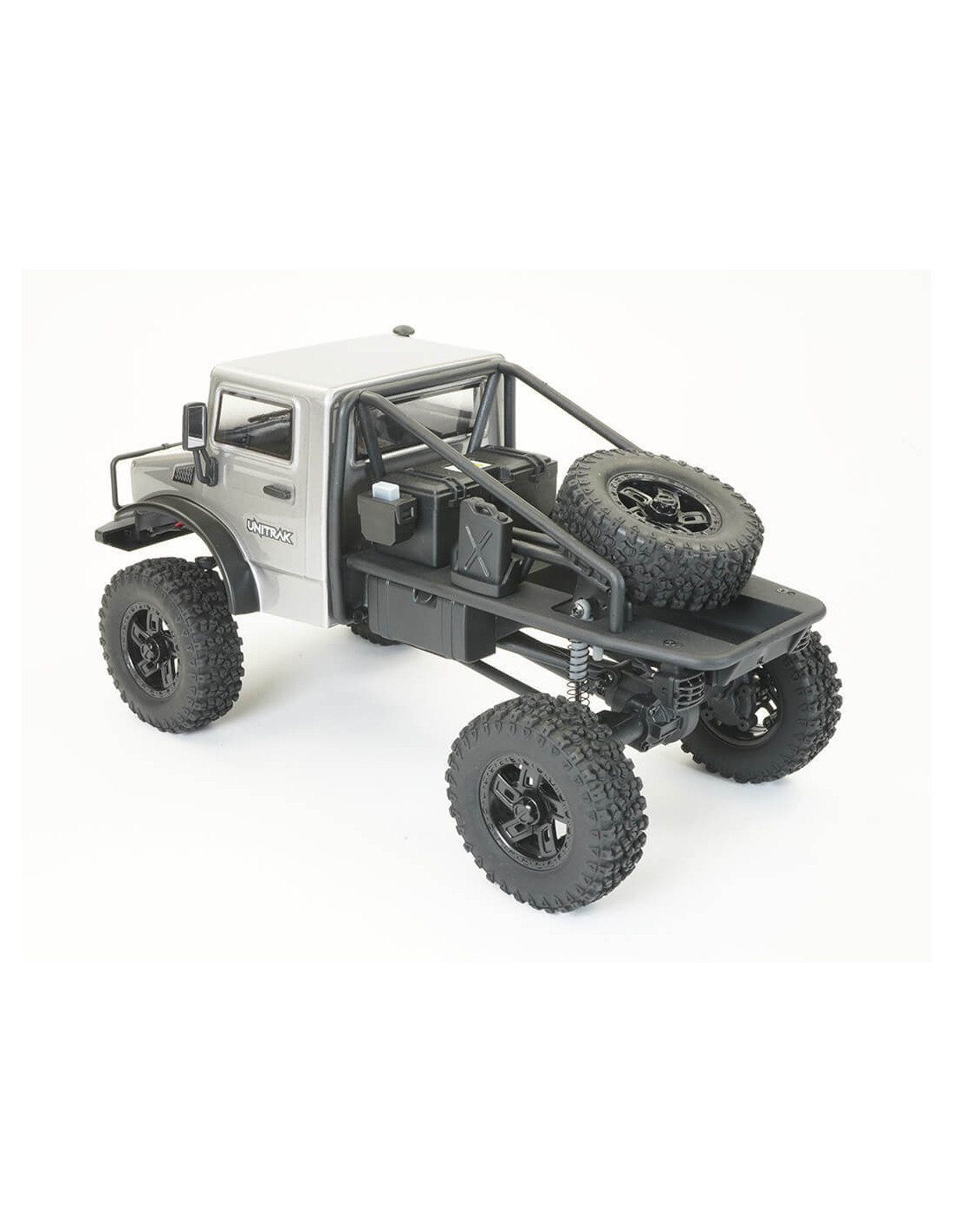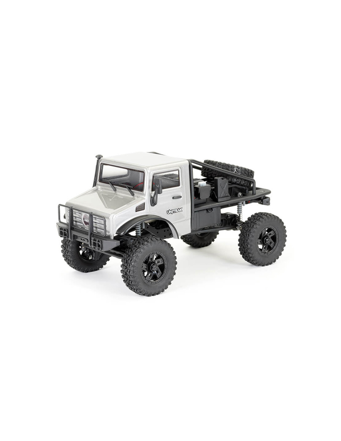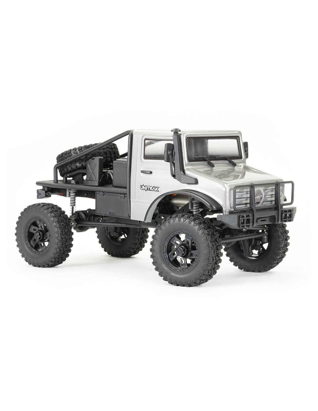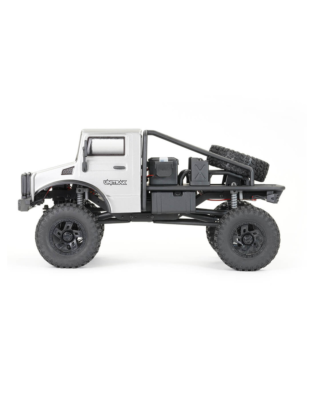Elija entre tres carrocerías de lexan pintadas de 1,2 mm de espesor súper detalladas: Rock Van, pick-up Texan o vehículo utilitario Unitrak, todas con accesorios de escala moldeada y luces LED.
