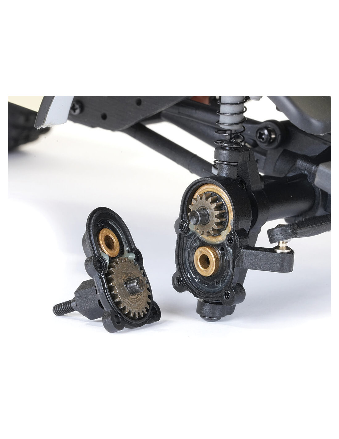 Engranajes metálicos de alta resistencia en los ejes delantero y trasero