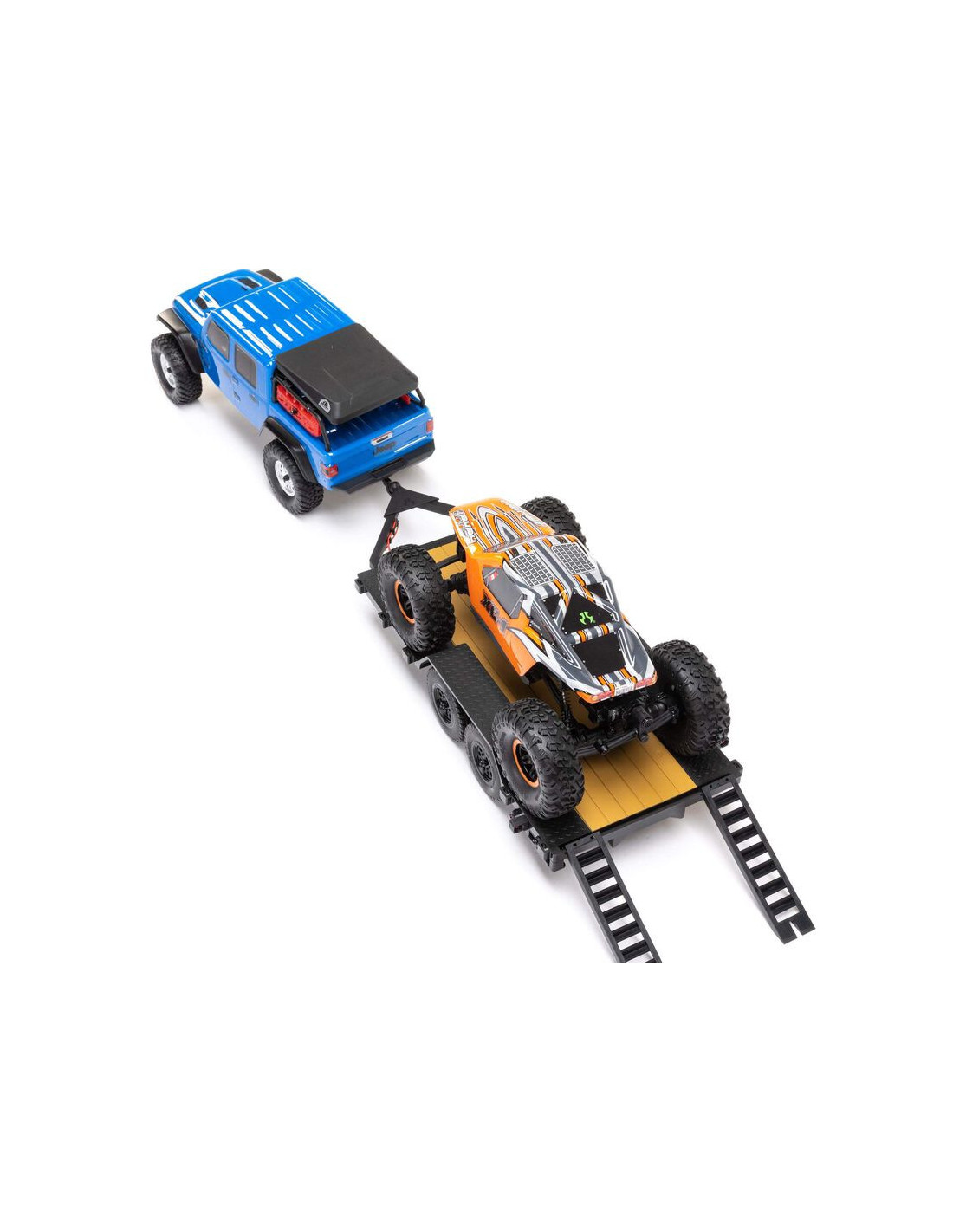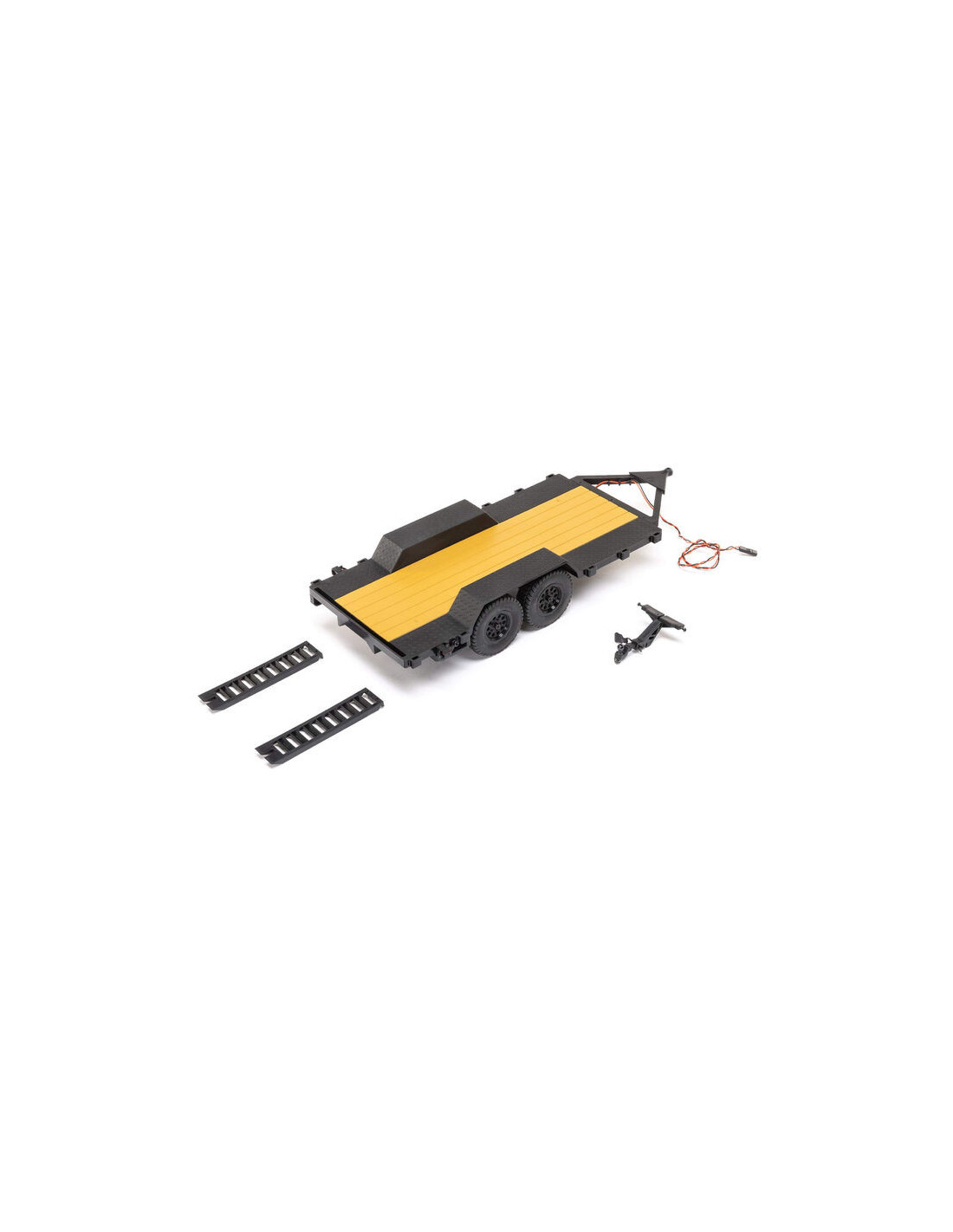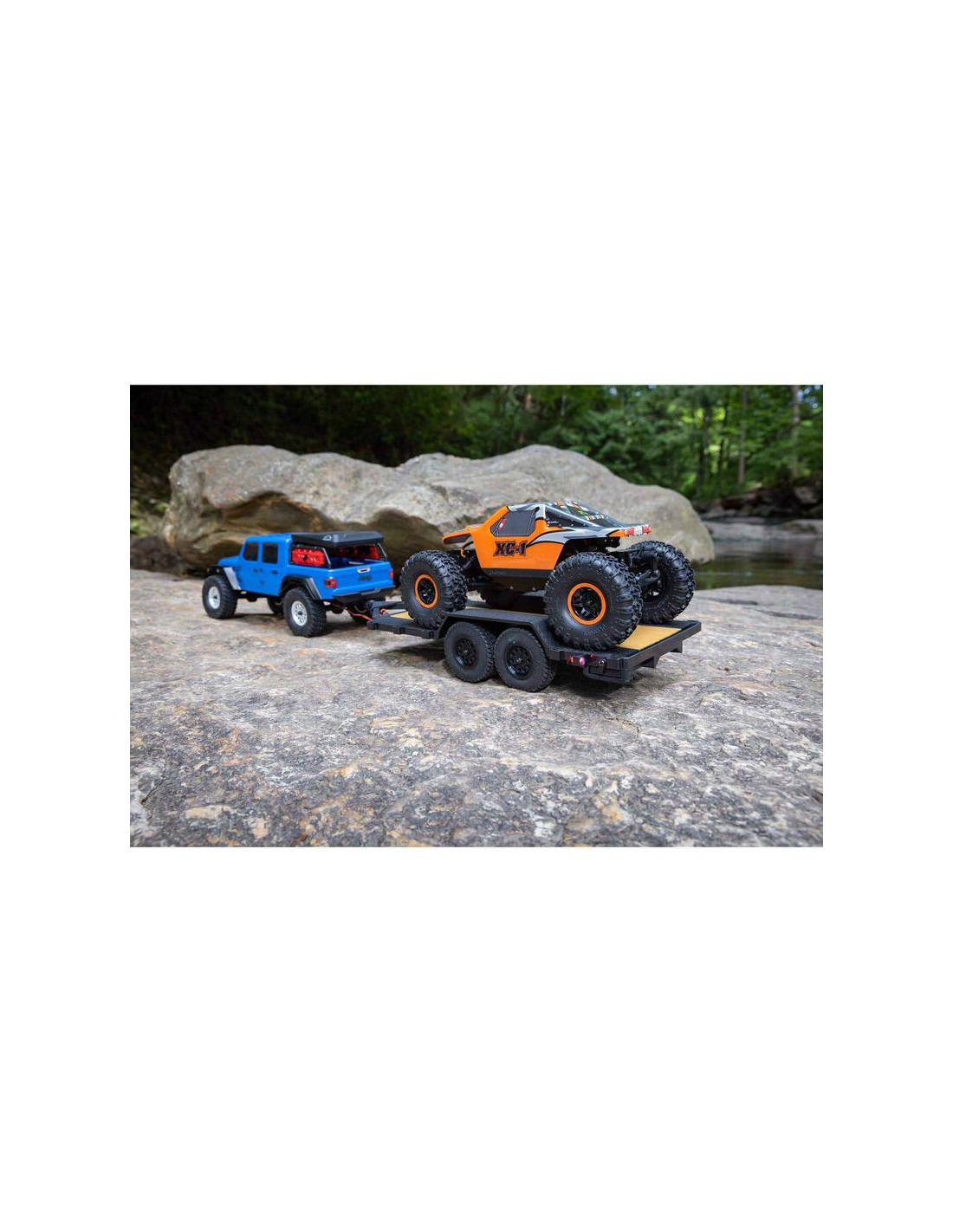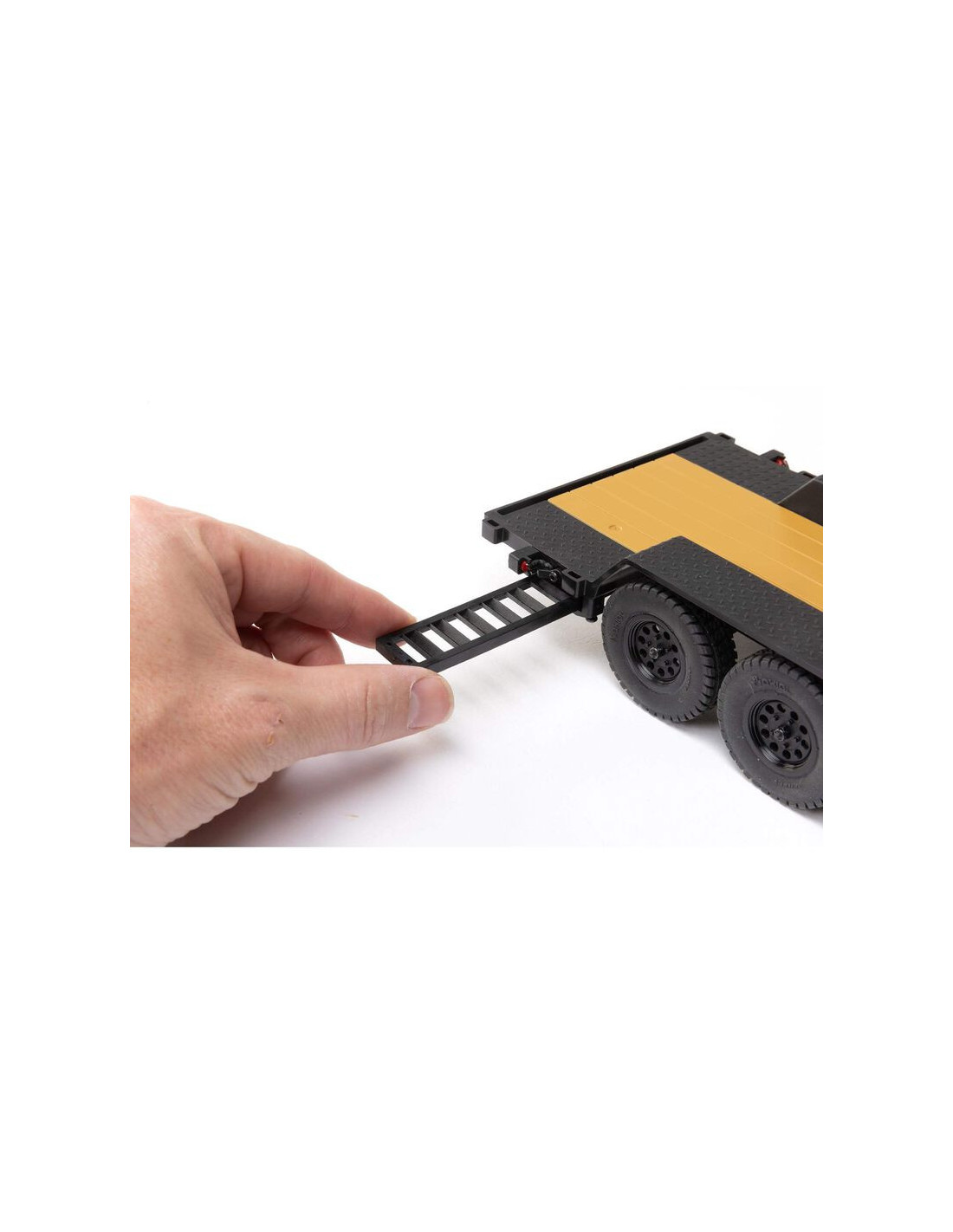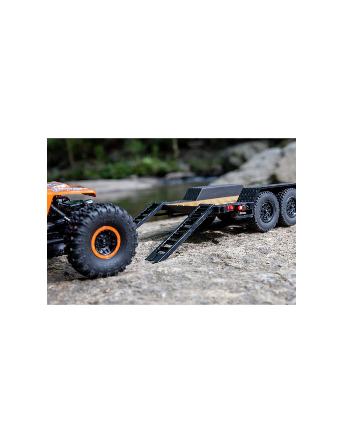 ¡Enganche el remolque para vehículos de plataforma plana Axial SCX24 a su SCX24 y remolque ese rastreador AX24 hasta el sendero! Este es el accesorio funcional definitivo para equipos RC a escala 1/24: listo para usar y completo con enganche, luces LED que funcionan y rampas ocultas.