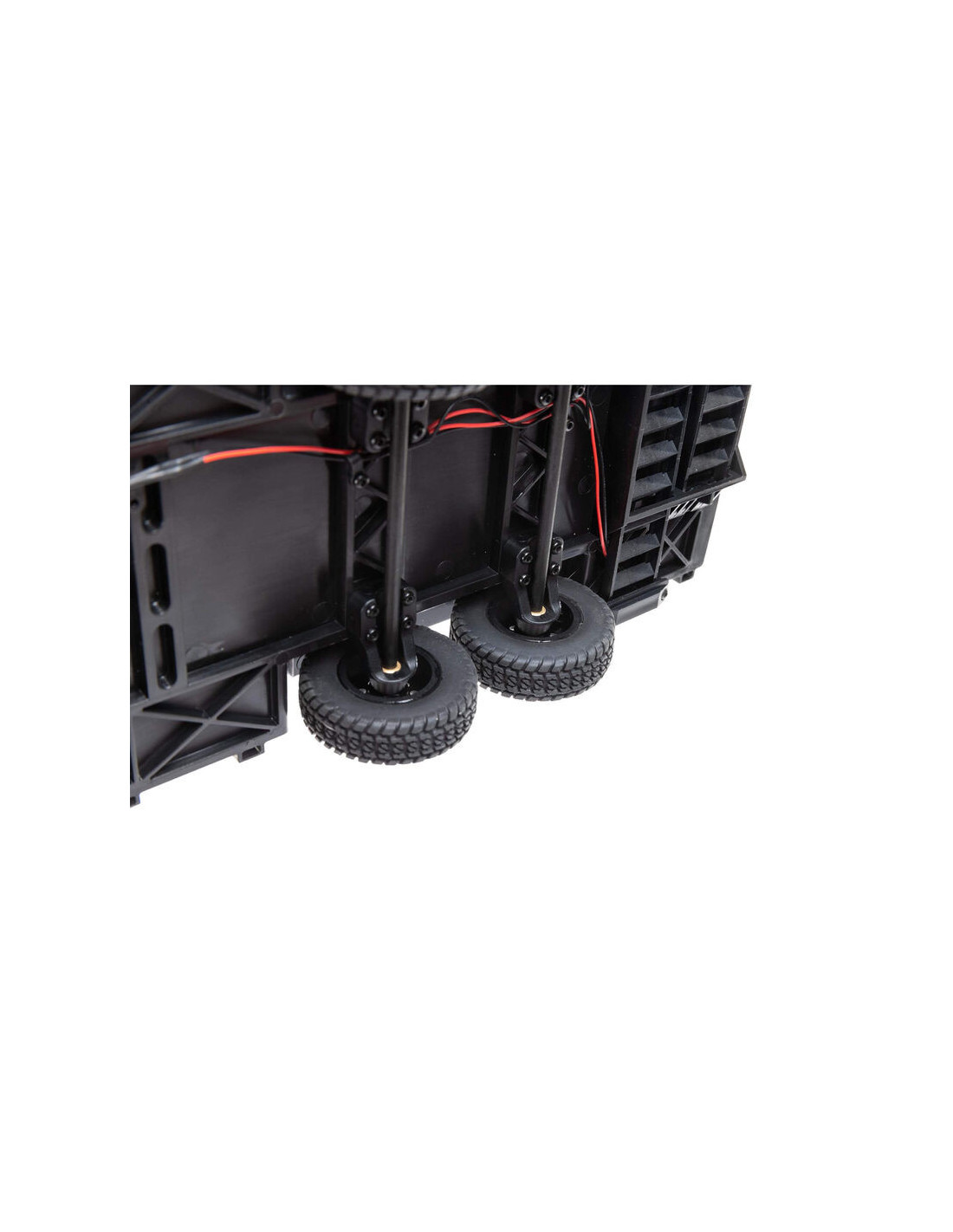 El remolque SCX24 tiene muchos detalles de escala y componentes funcionales, incluidas luces de marcha LED rojas instaladas de fábrica que vienen precableadas y se pueden enchufar a su ubicación auxiliar para obtener energía. Las luces de circulación añaden realismo en la exhibición y en los senderos.