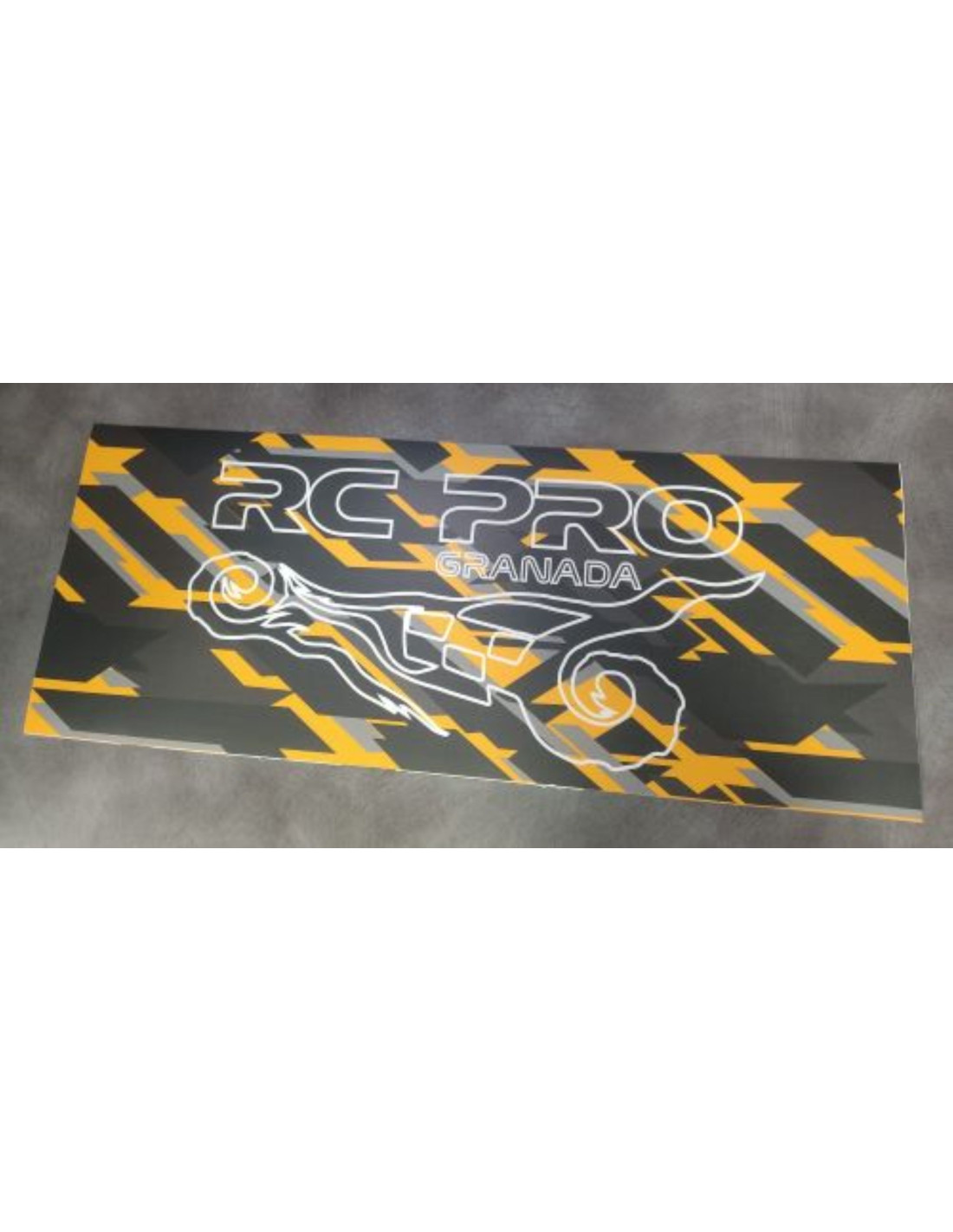 LAMINA PROTECCTORA DE CHASIS HECHA EN VINILO RESISTENTE CON LOGO RCPROGRANADA TAMAÑO 50CMX20CM, IDEAL PARA COCHES ESCALA 1/8 CON CHASIS DE ALUMINIO