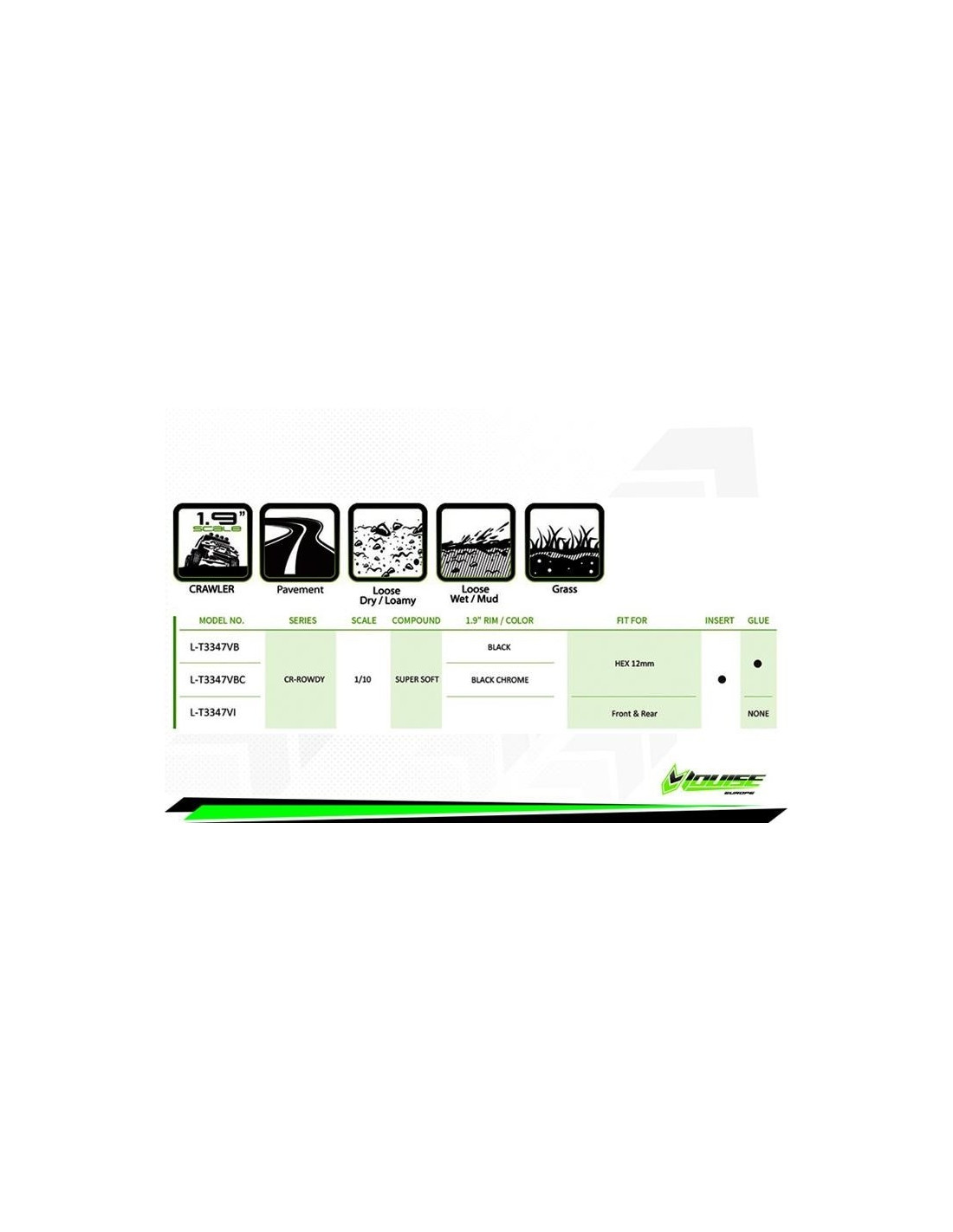 L-T3347VI CR-ROWDY Neumáticos Crawler Clase 1 Super Blandos 1/10 para Ruedas 1.9 (1 Par)TRX4,TRX6,CAPRA,