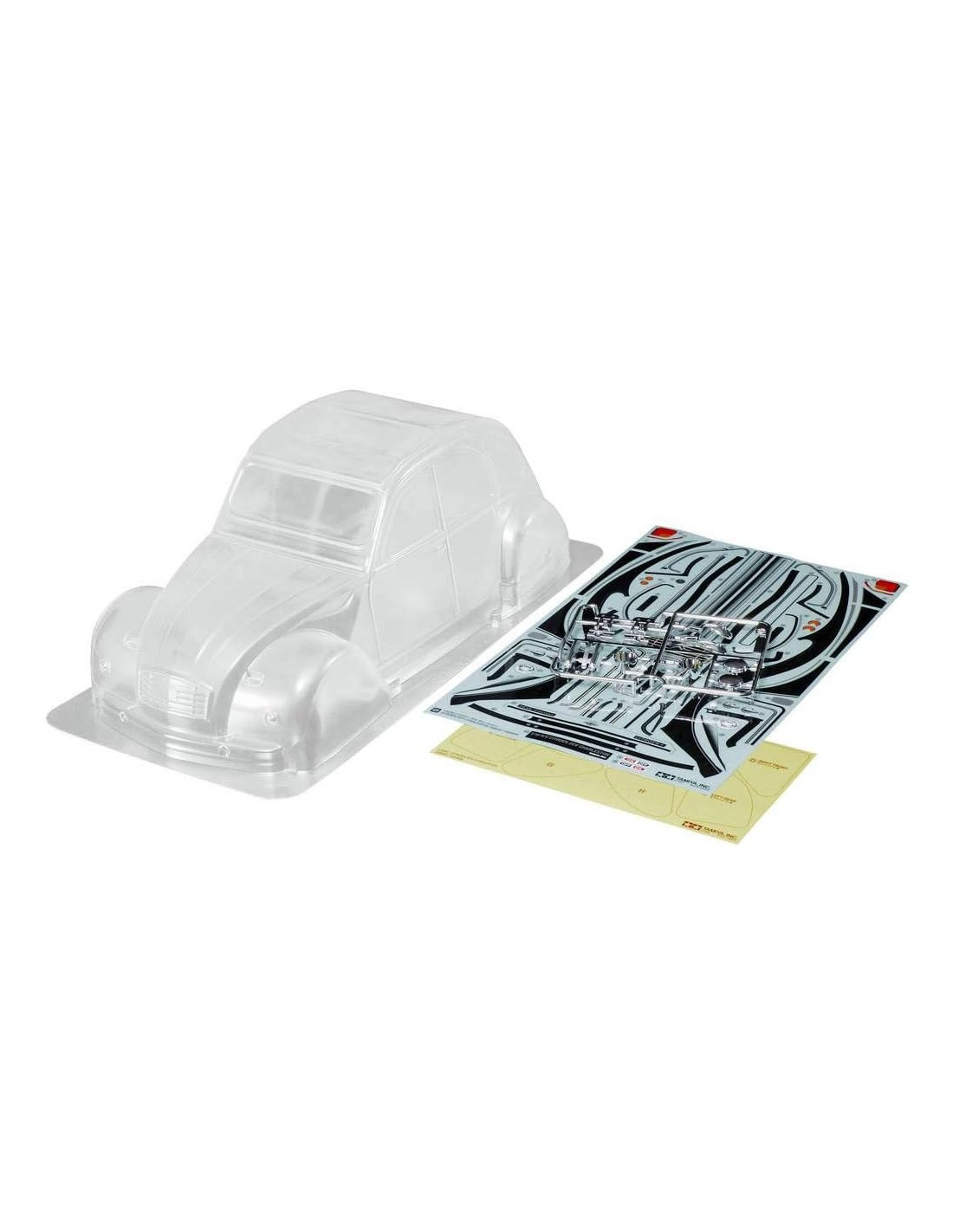 Se trata de un juego completo de piezas de repuesto de carrocería del Citroën 2CV Charleston. El juego incluye un juego de pegatinas con detalles de la carrocería, cinta adhesiva para ventanas y espejos laterales de plástico.