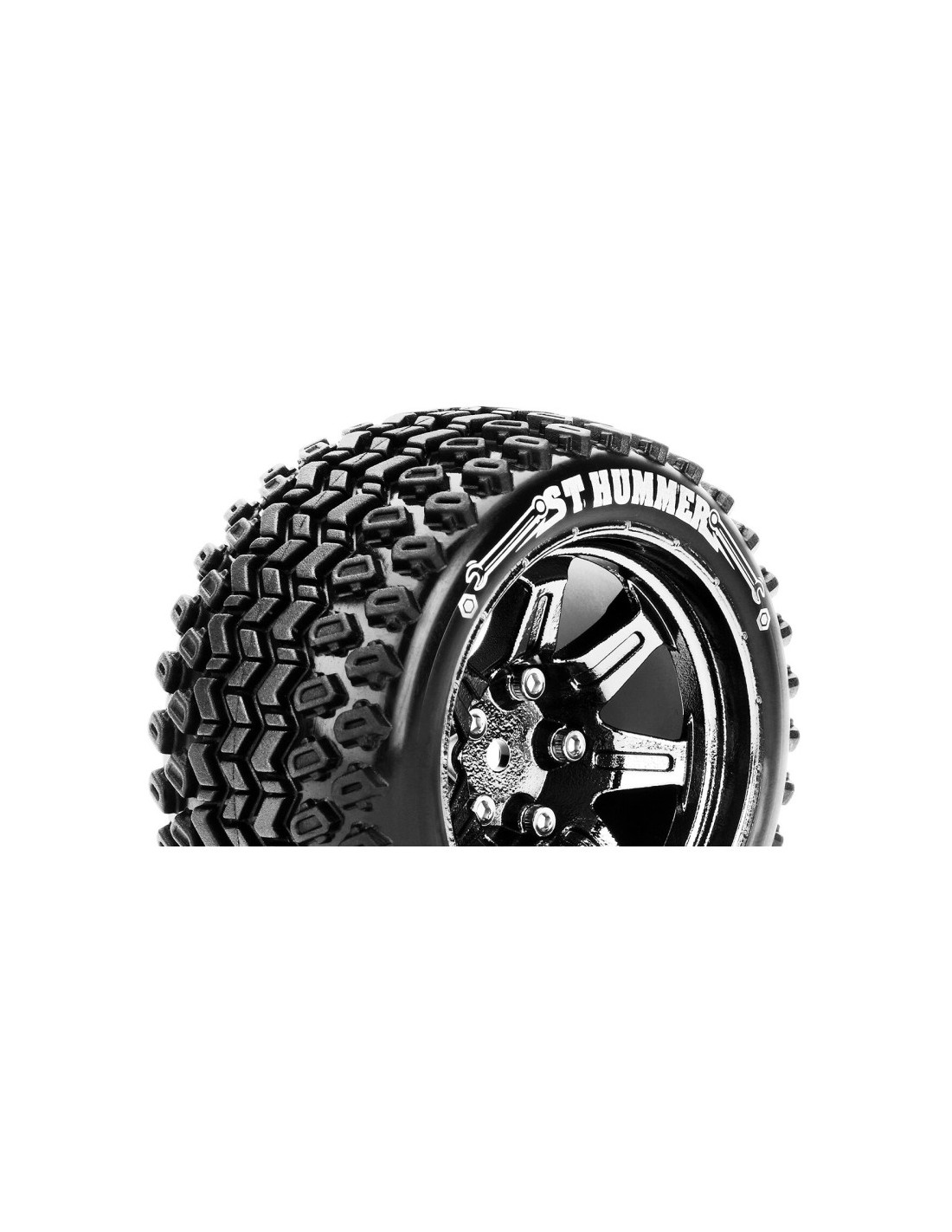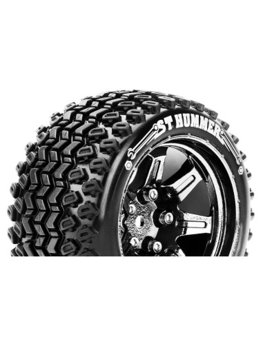 LR-T3209SBCM Louise RC ST-HUMMER 1/10 Stadium Truck Tire Set Mounted Sport Black Chrome 2.8 Wheels Hex 14mm
