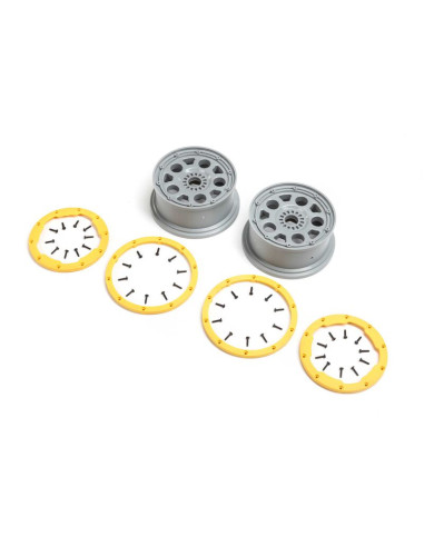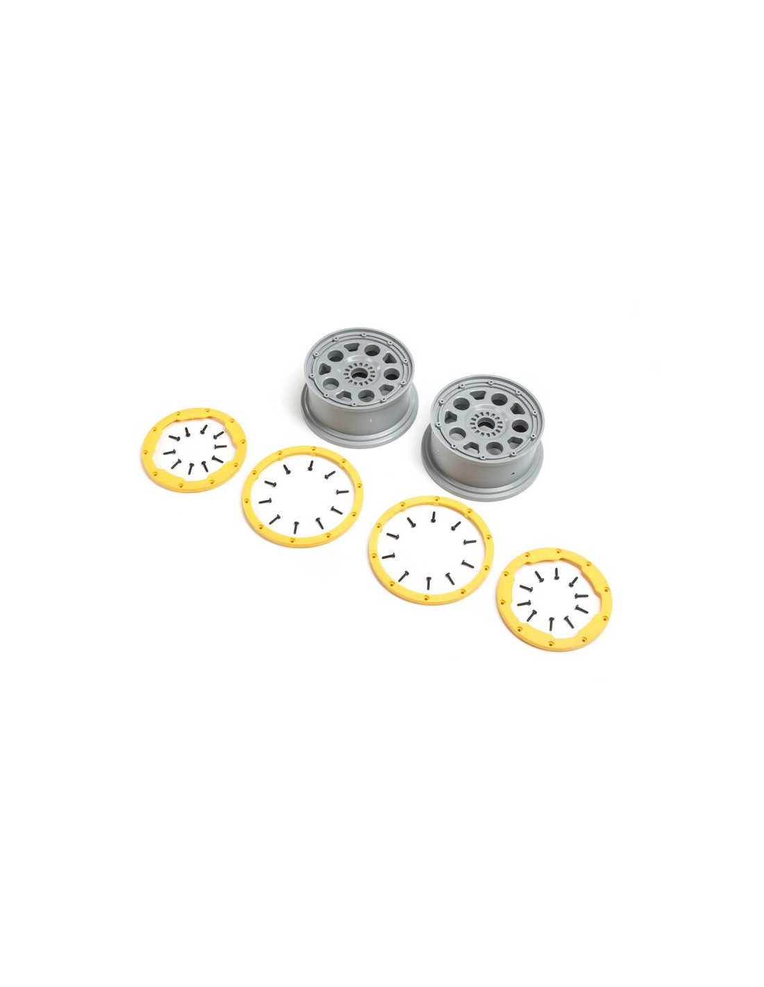 LOS45036 LOSI Ruedas, plata, amarillo, Beadlock (2): DBXL 2.0